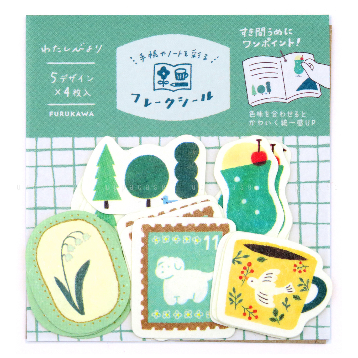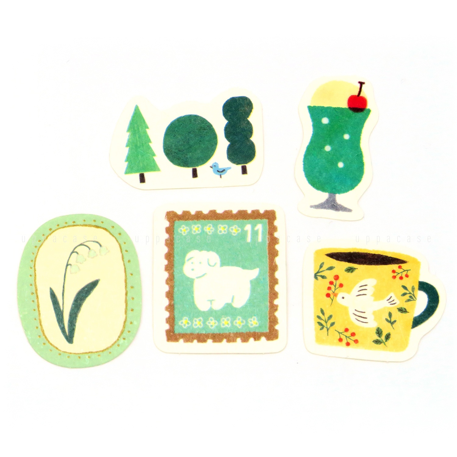綠色款貼紙包以獨特的綠色小狗郵票圖案為特色。