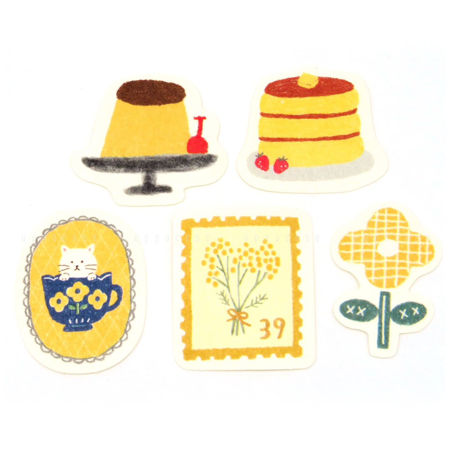 黃色款貼紙包結合了黃色小貓和美味的布丁元素。