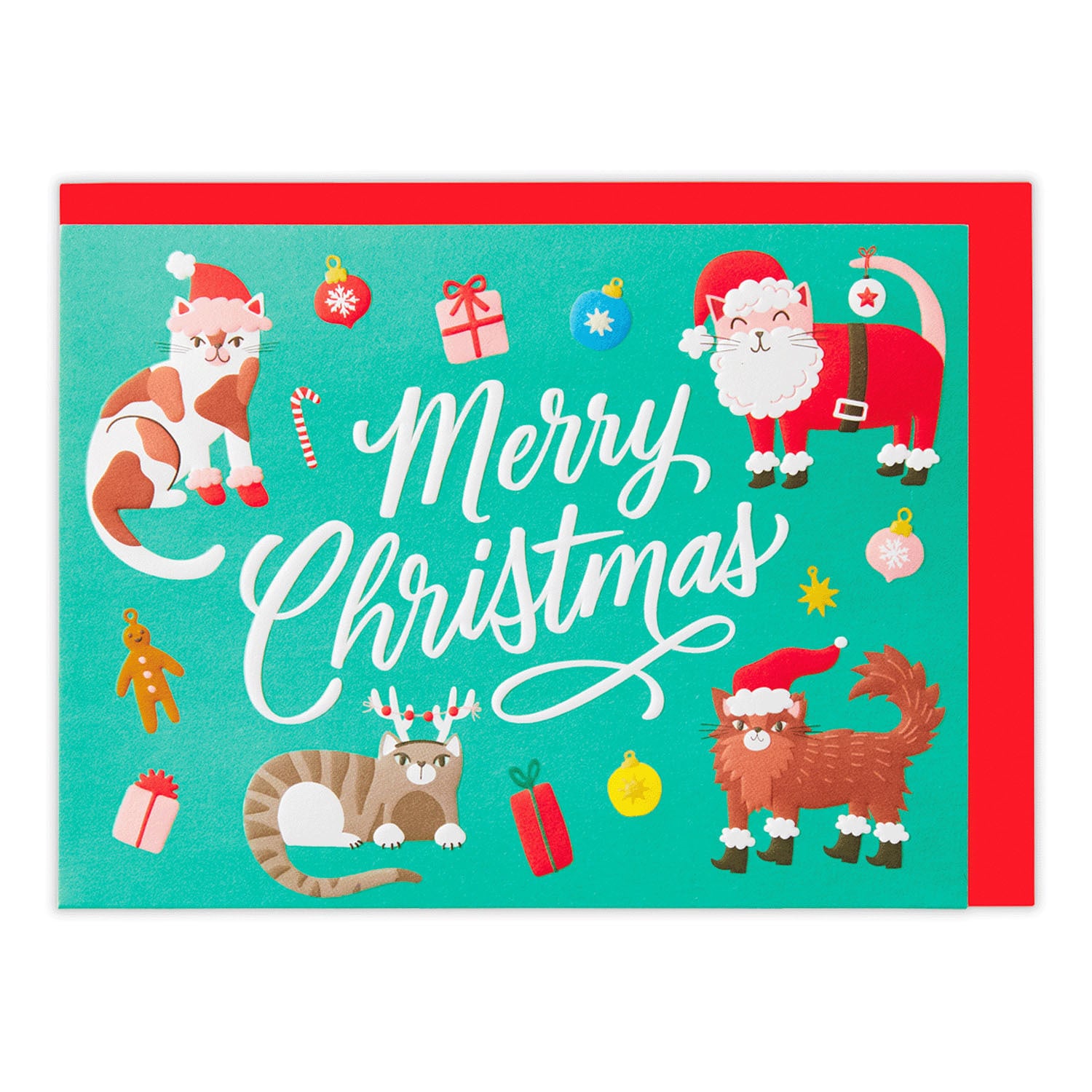 聖誕卡 (藍綠色聖誕老人貓咪款)
