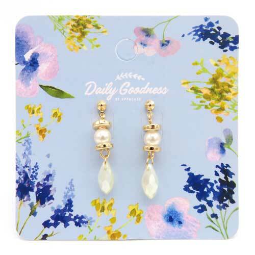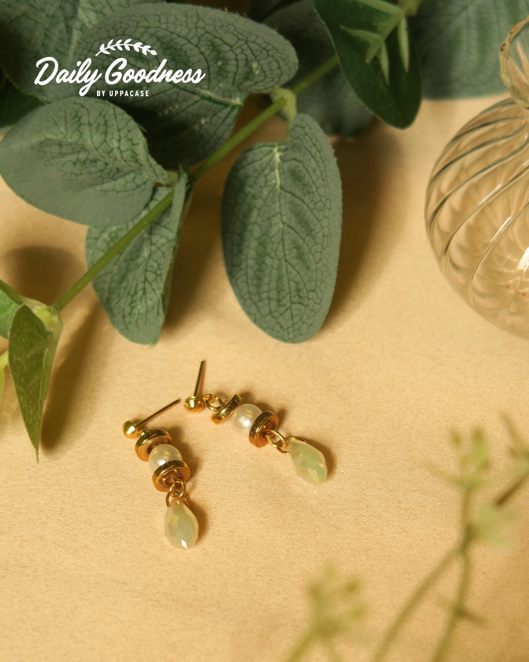 AD - 金屬珍珠漏斗水滴耳環 (淡玉色款)