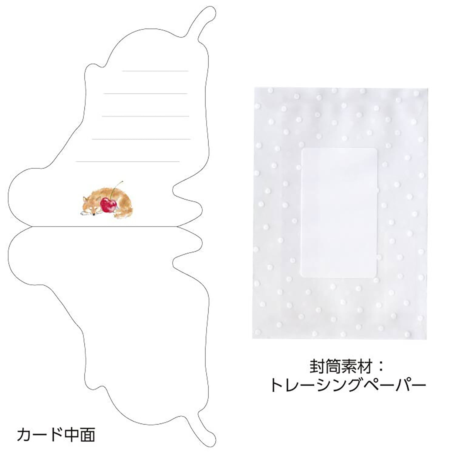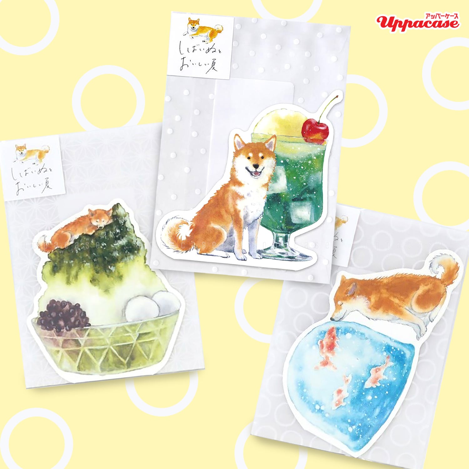 由日本插畫家村田なつか所繪製的水彩柴犬賀卡,從中很能感受到夏天的氣氛。可愛的柴犬與美味的夏日美食配搭在一起真是透心涼啊!半透明紙的信封也給人一種清涼通透感,與信紙一起使用十分好看。當作普通的賀卡或是附在禮物中都很合適使用。商品尺寸:約11.5×16.5cm