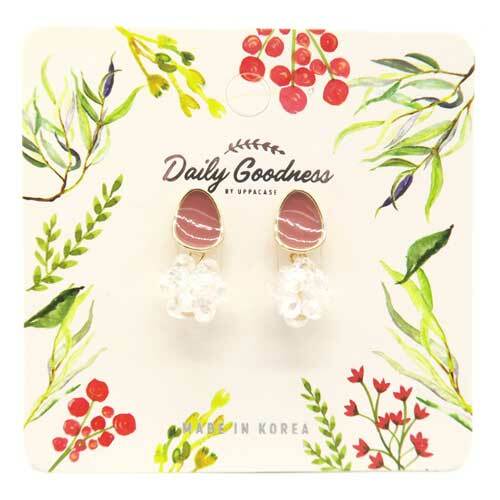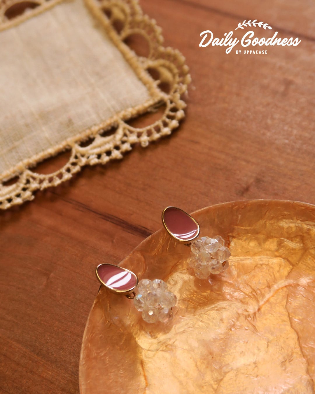 BY - 金屬水滴水晶球耳環 (豆沙色款)