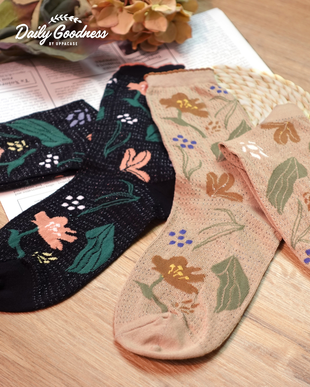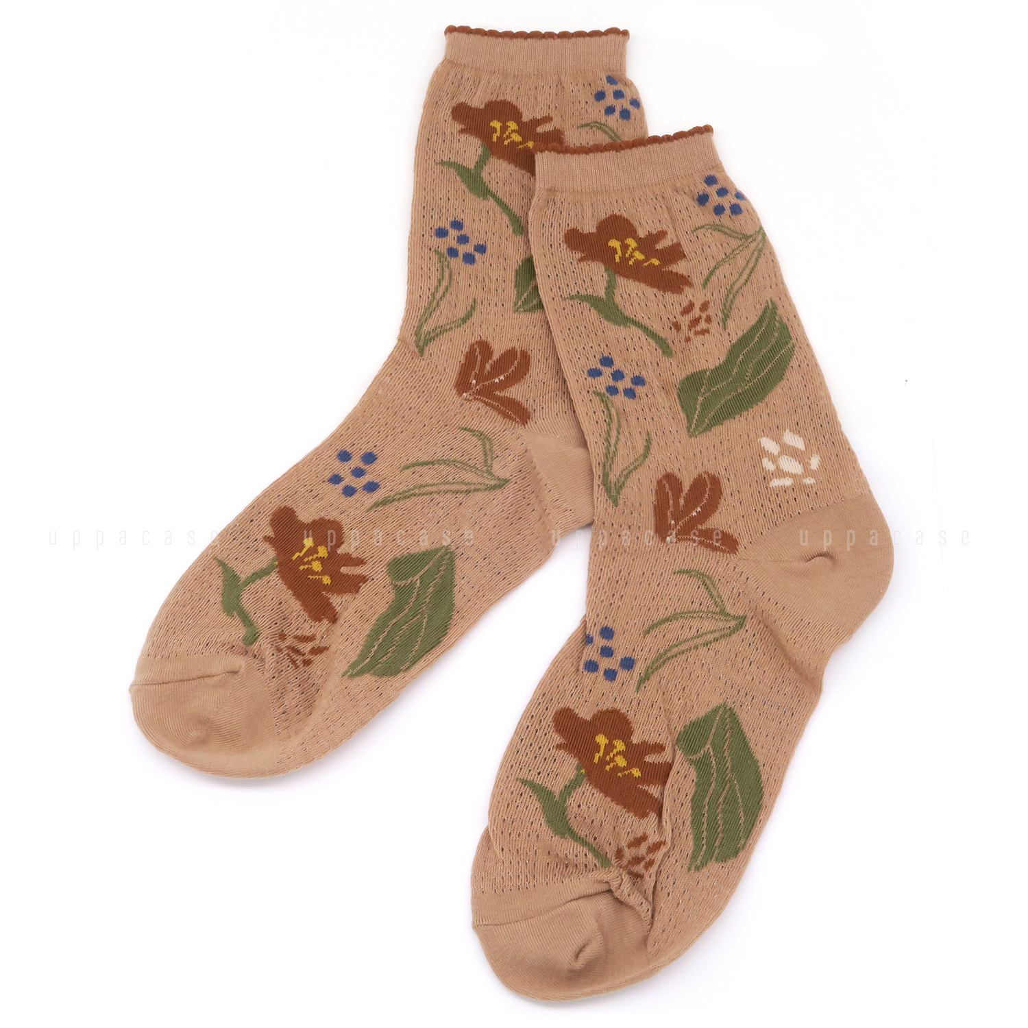 Biarritz - 襪子 (咖啡色北歐花草款)