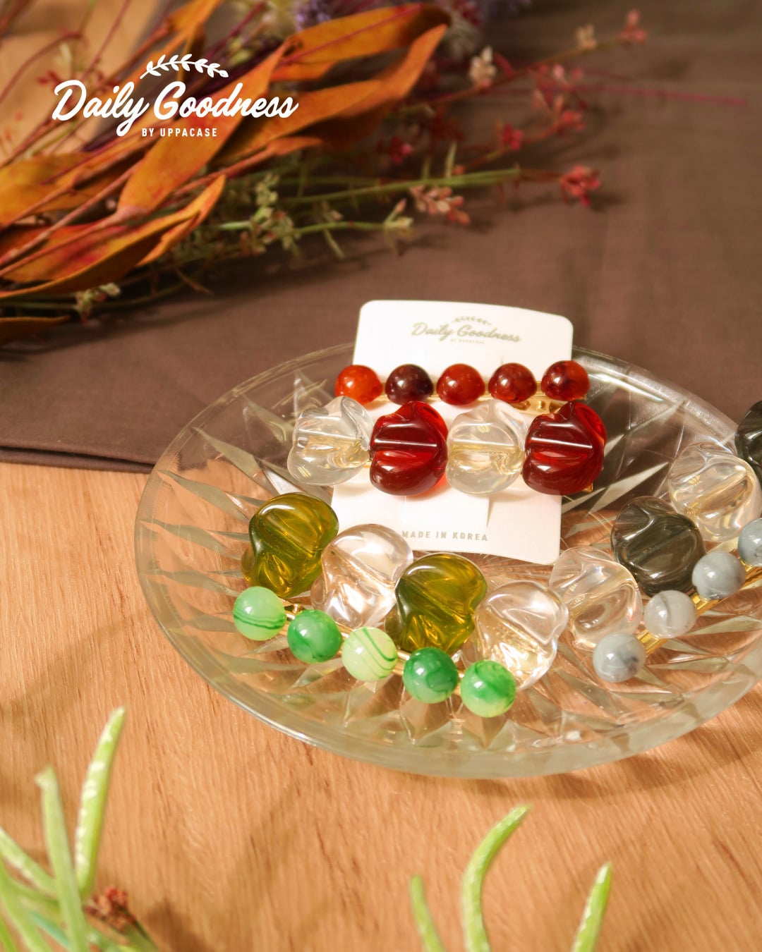 三色的髮夾紋路有如水晶一樣在不同角度都有亮麗的表面光澤。