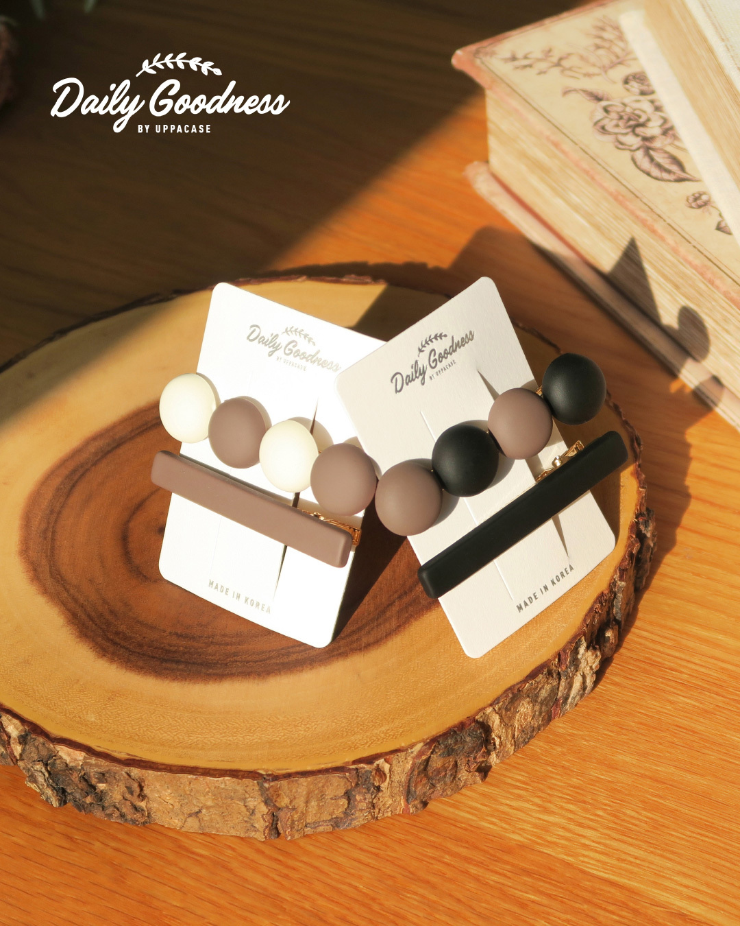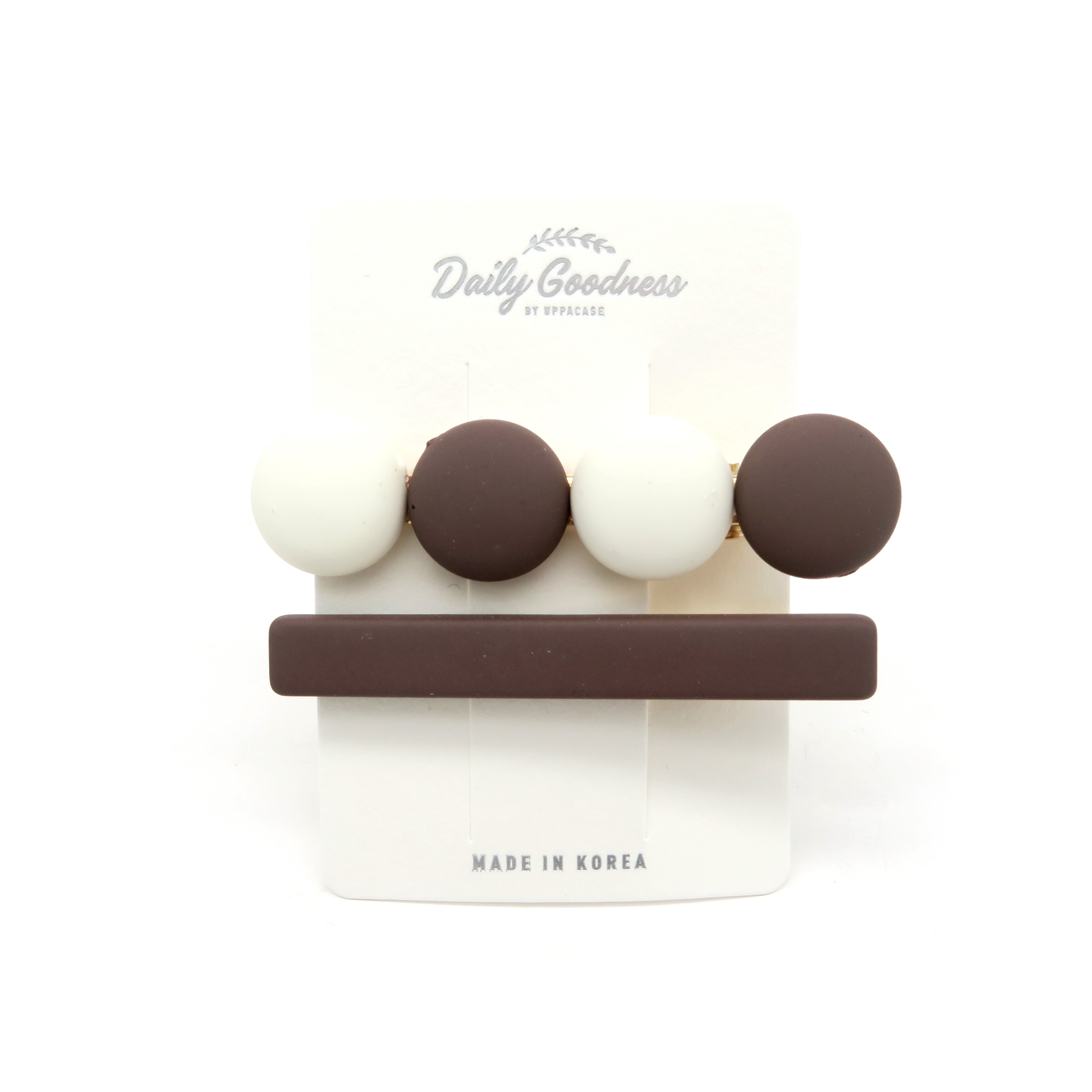 CL - 霧面雙色圓形髮夾套裝 (咖啡拼米白色款)