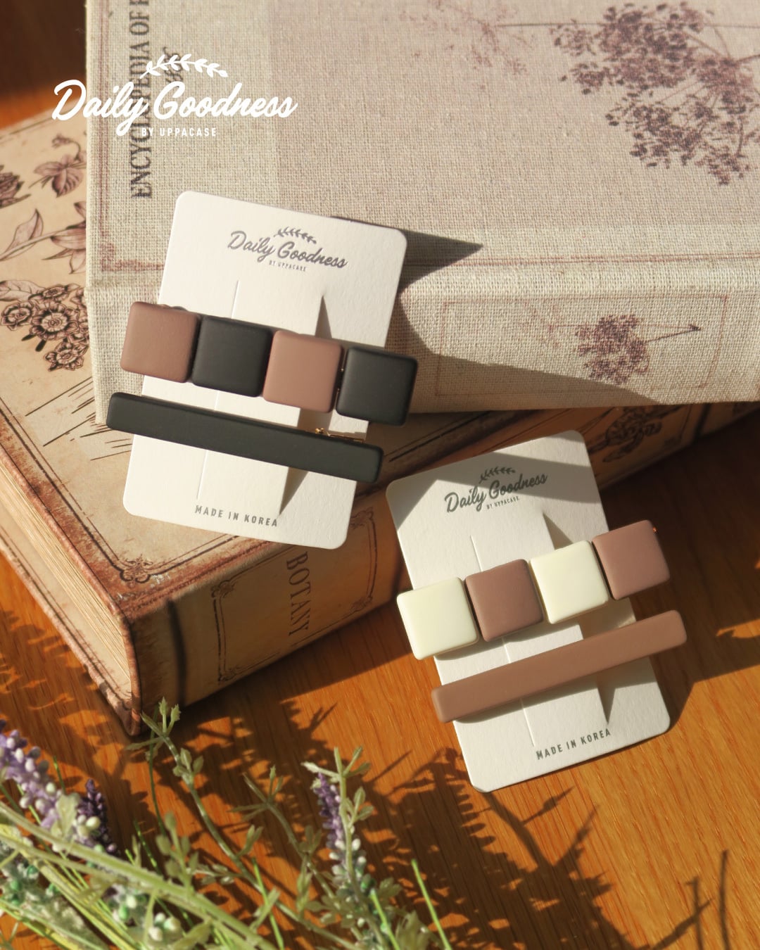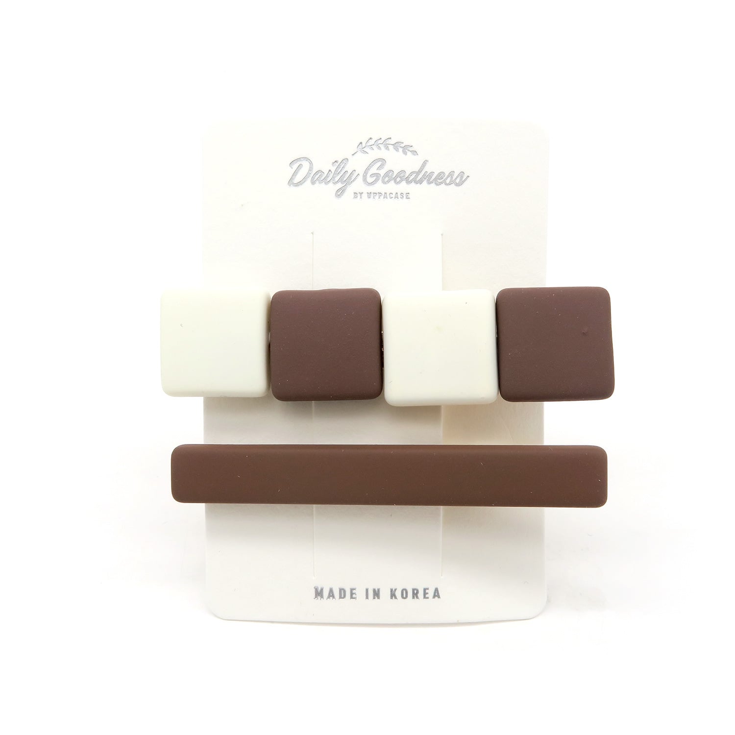 CL - 霧面雙色方形髮夾套裝 (咖啡拼米白色款)