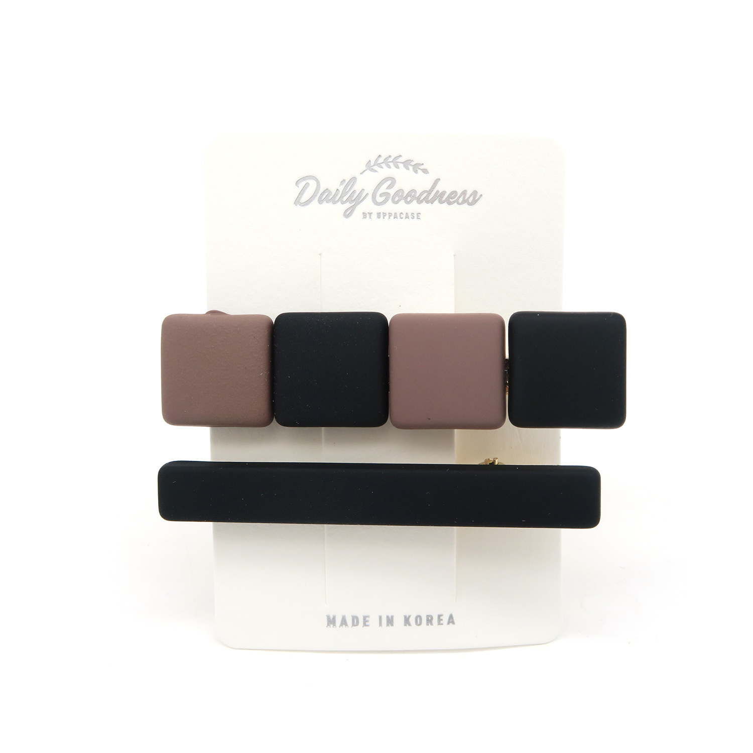CL - 霧面雙色方形髮夾套裝 (咖啡拼黑色款)