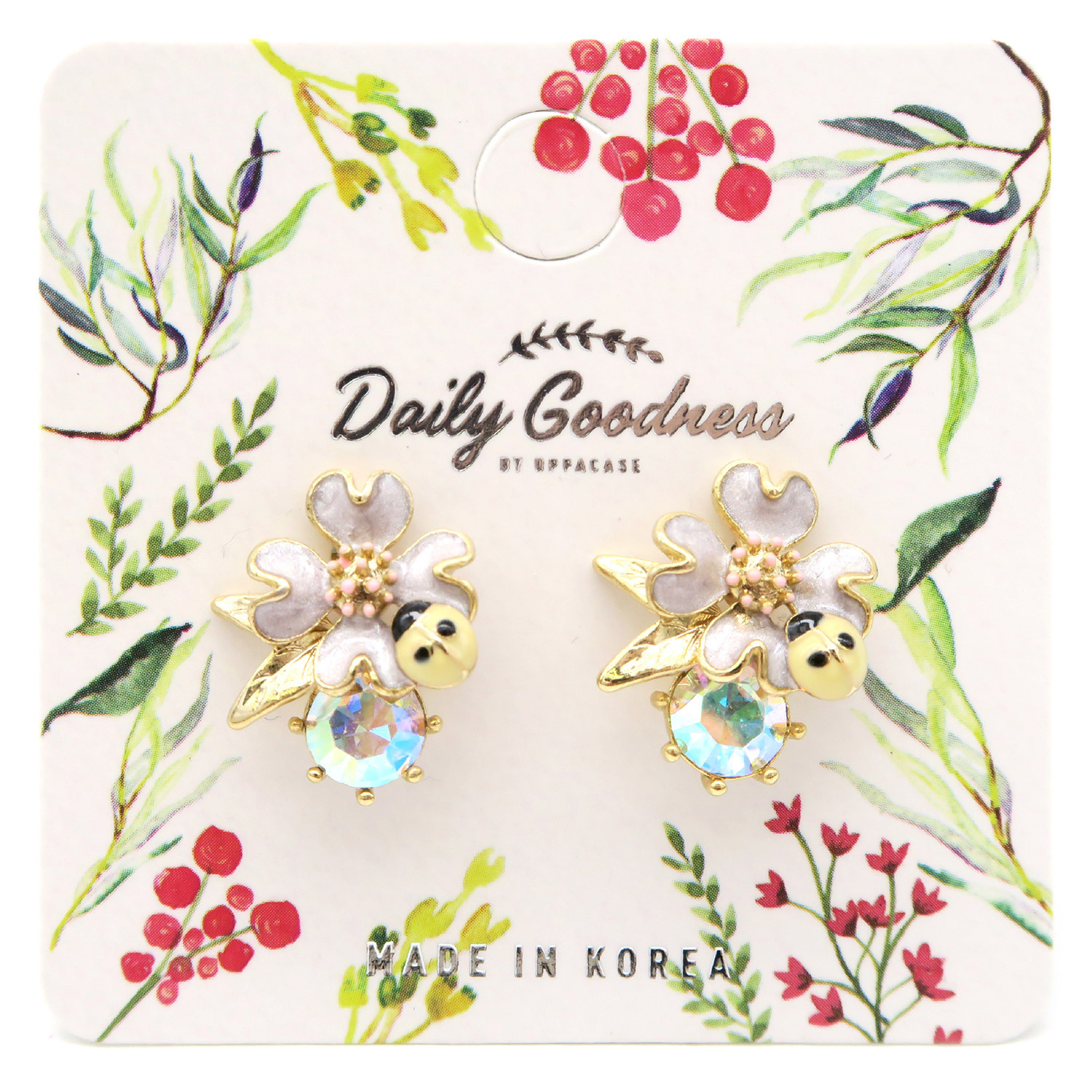 CO - 閃石甲蟲花朵耳環 (淡紫色款)