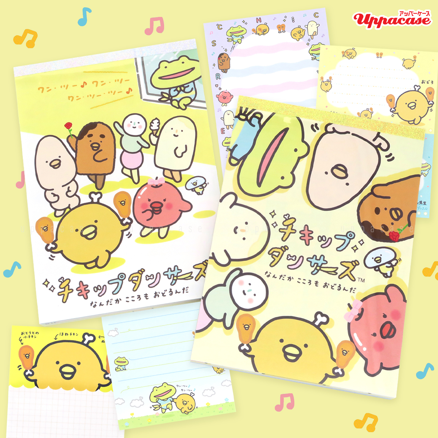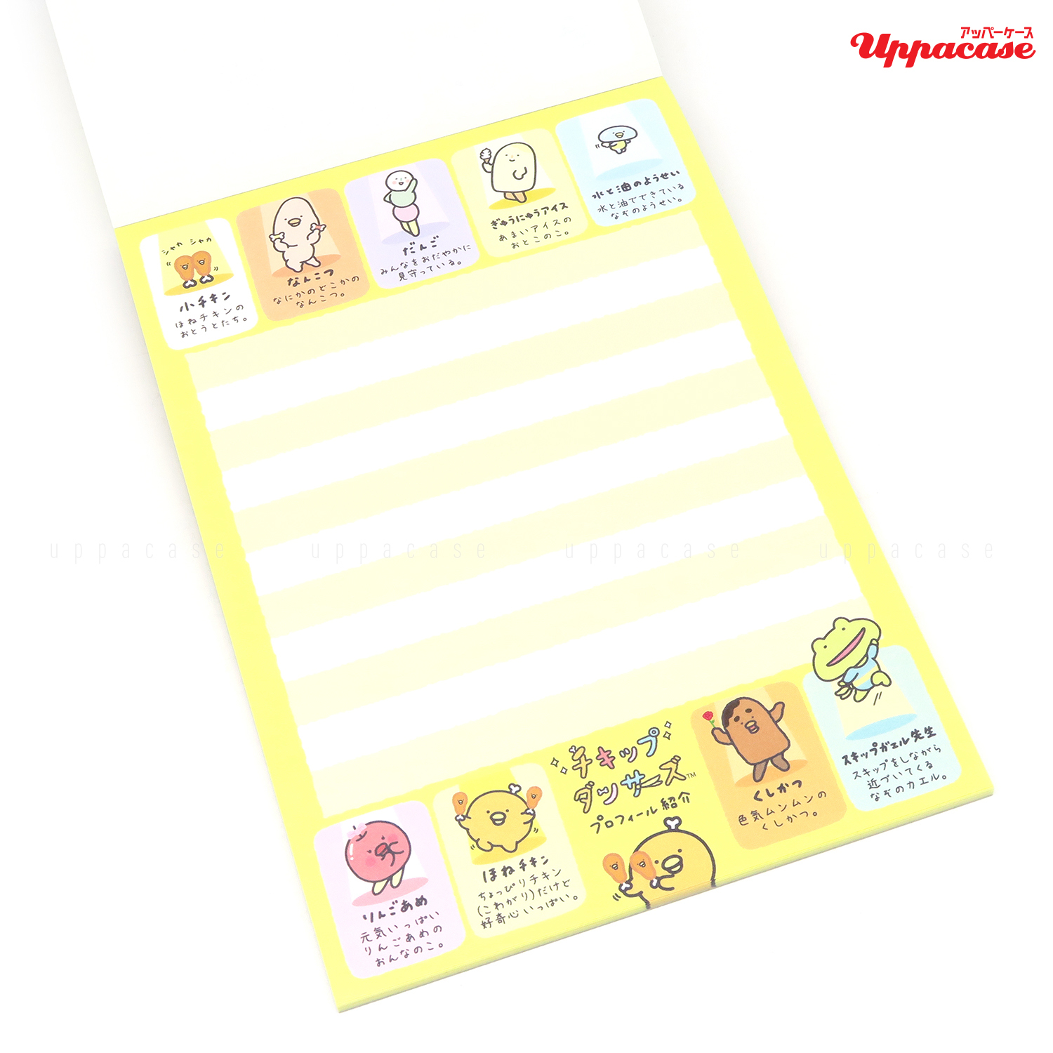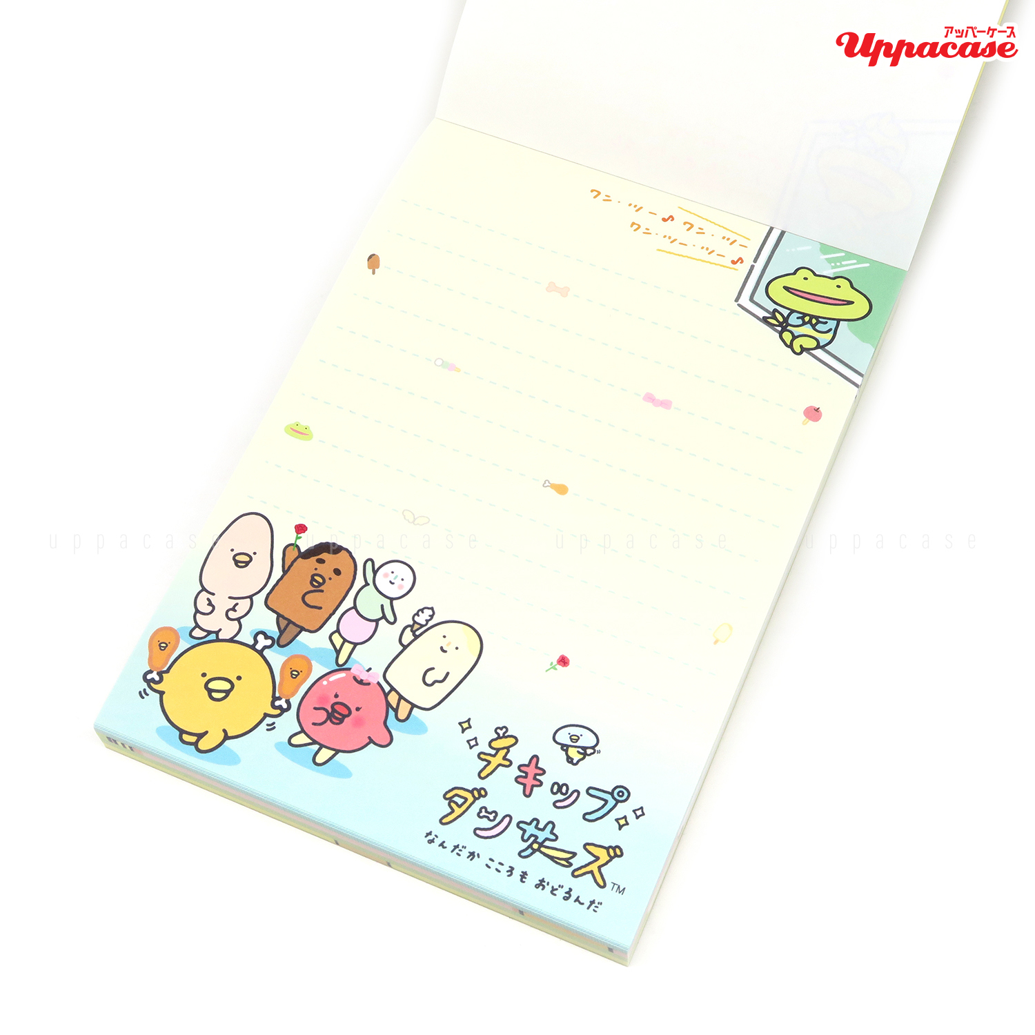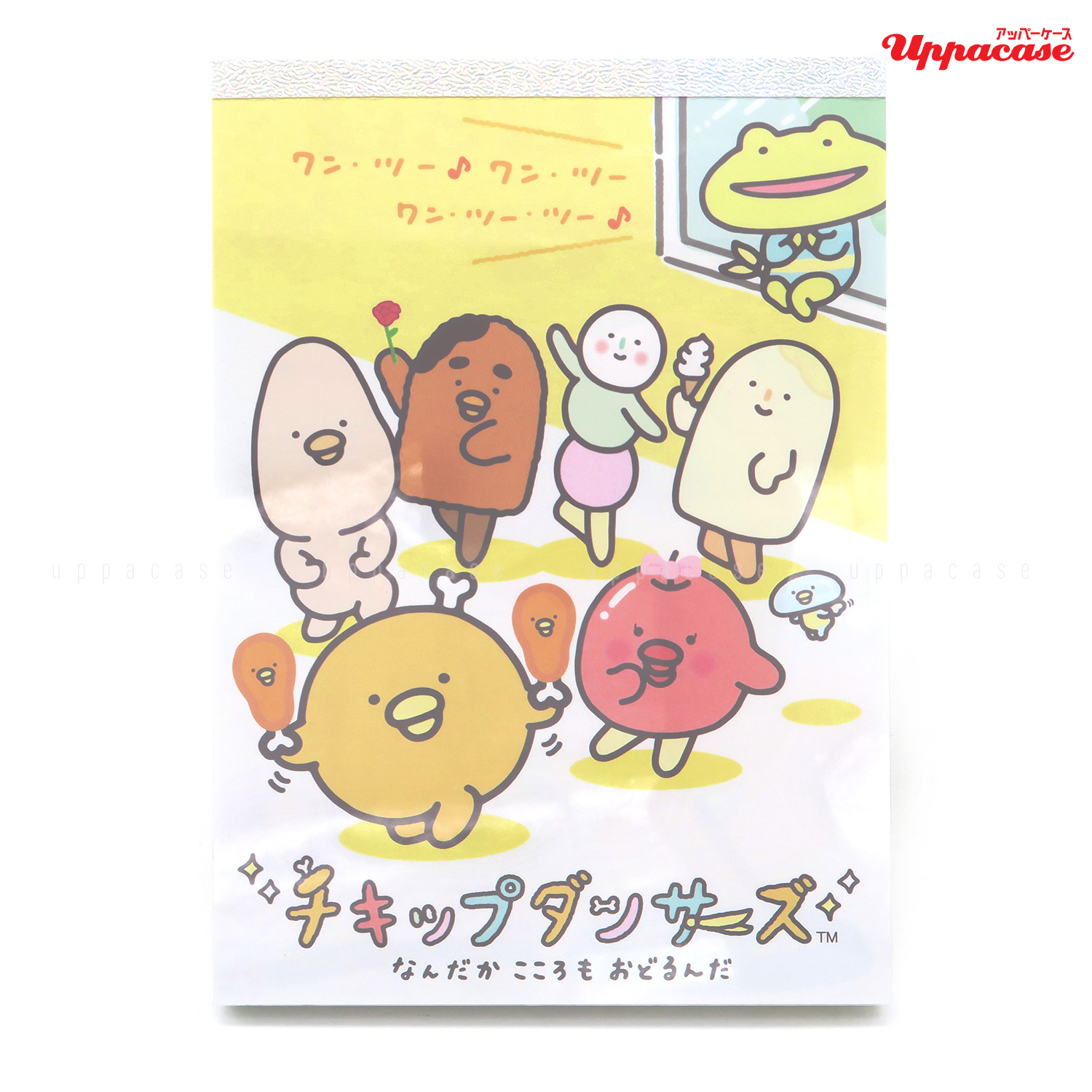 是San-x新出的動畫角色系列chickip dancers,以可愛的食物為角色設計每個都充滿個性。他們會在家中的不同場所中舞動身體是可愛又有趣的角色們!記事本一本有4款不同設計的內頁合共100頁,這樣一定能滿足你記事的需要~與chickip dancers一起動起來舞動身體吧!商品尺寸:約15×10.5cm內容:4種設計,合共約100枚 (附貼紙一枚)