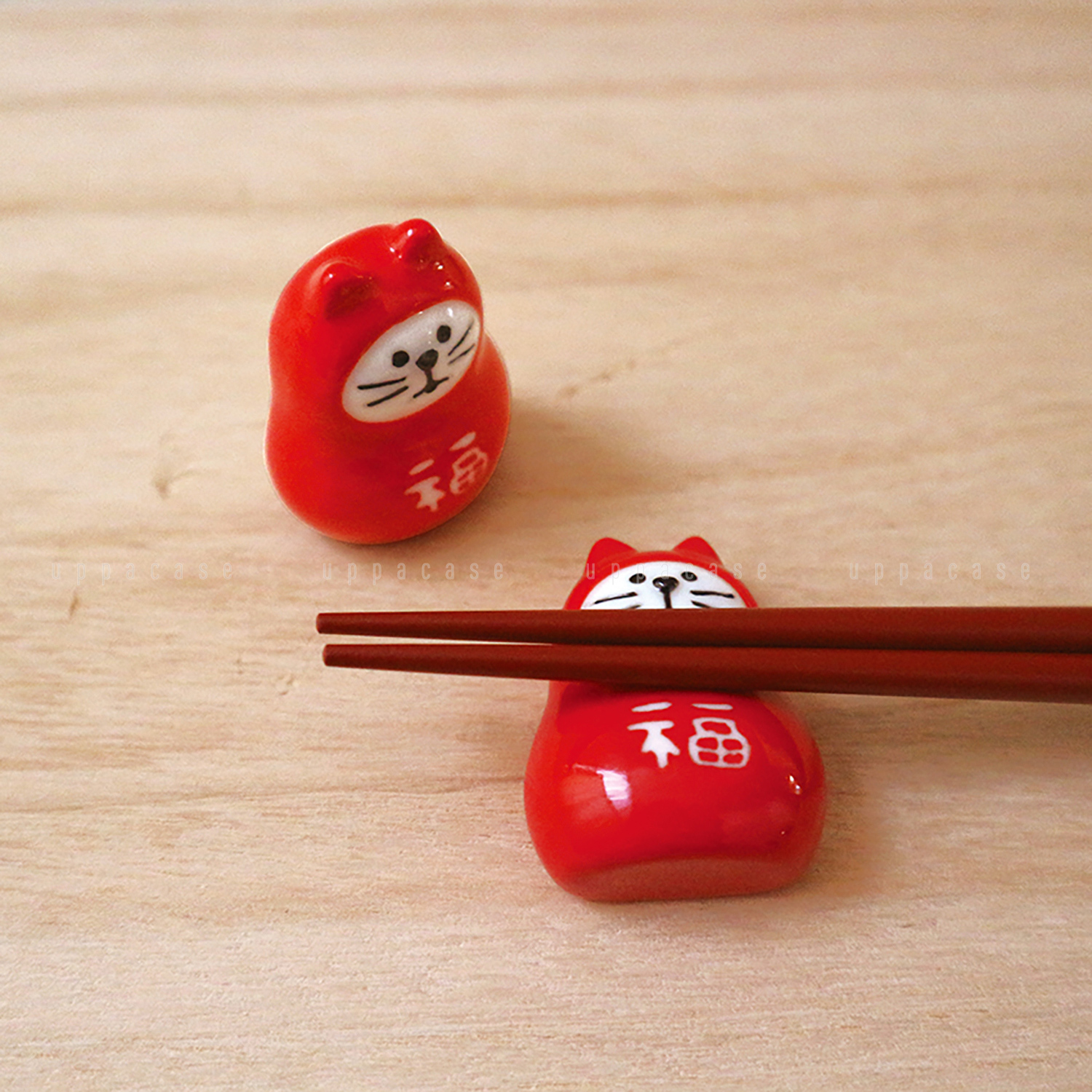 在正月的餐桌上若能有concombre的招福系列筷子座,那麼相信今年也會過得更幸福~四款的筷子座都十分可愛也是正月的代表物,分別是達摩、文鳥鏡餅、老虎與獅子真的很喜慶感!當沒有作為筷子座使用時也能像裝飾物一樣立著。商品尺寸:約3.3×4.2×2cm※手工上色製品可能存在輕微差異,不屬於瑕疵範圍,敬請諒解。