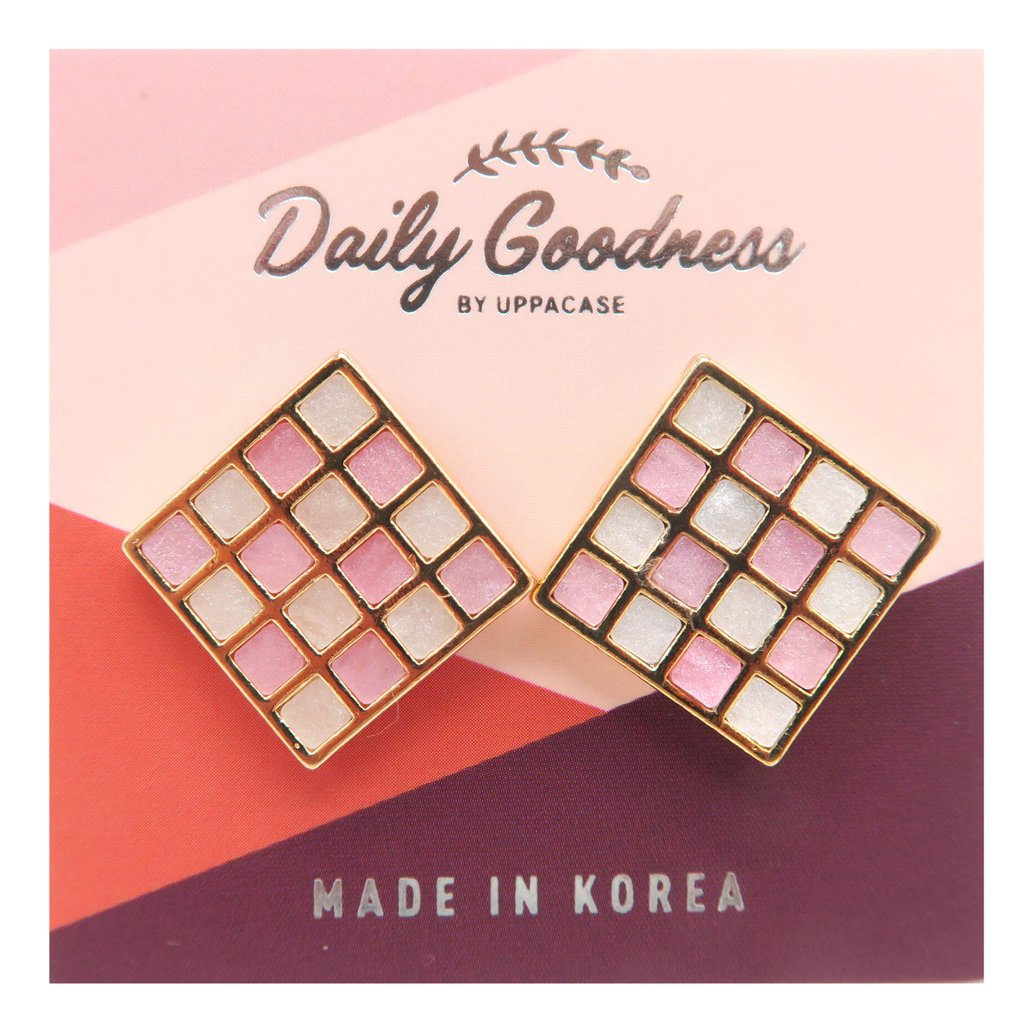 EAB - 復古方框磁磚耳環 (白色拼粉紅色款)