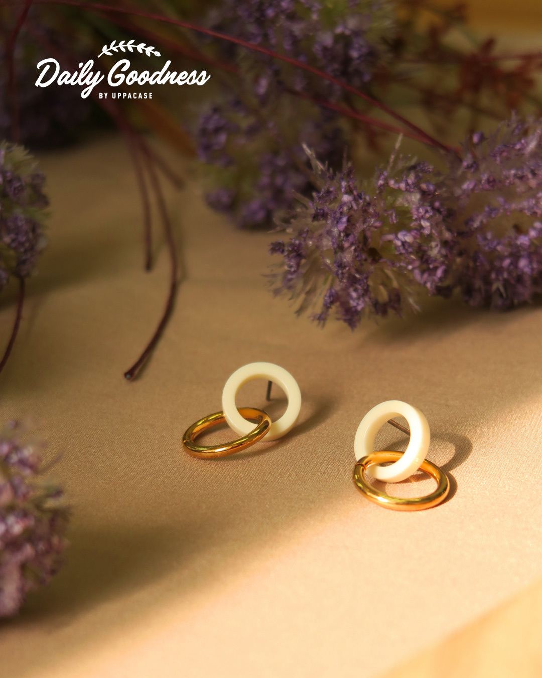 EAB - 金屬雙環耳環 (象牙白色款)