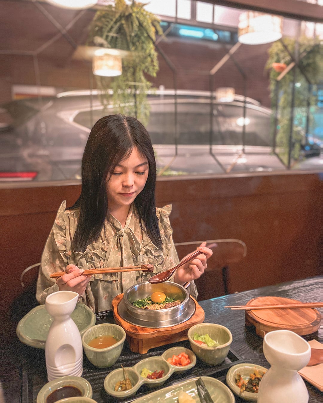 GG - 櫻花雪紡長袖上衣 (薄荷綠色款)