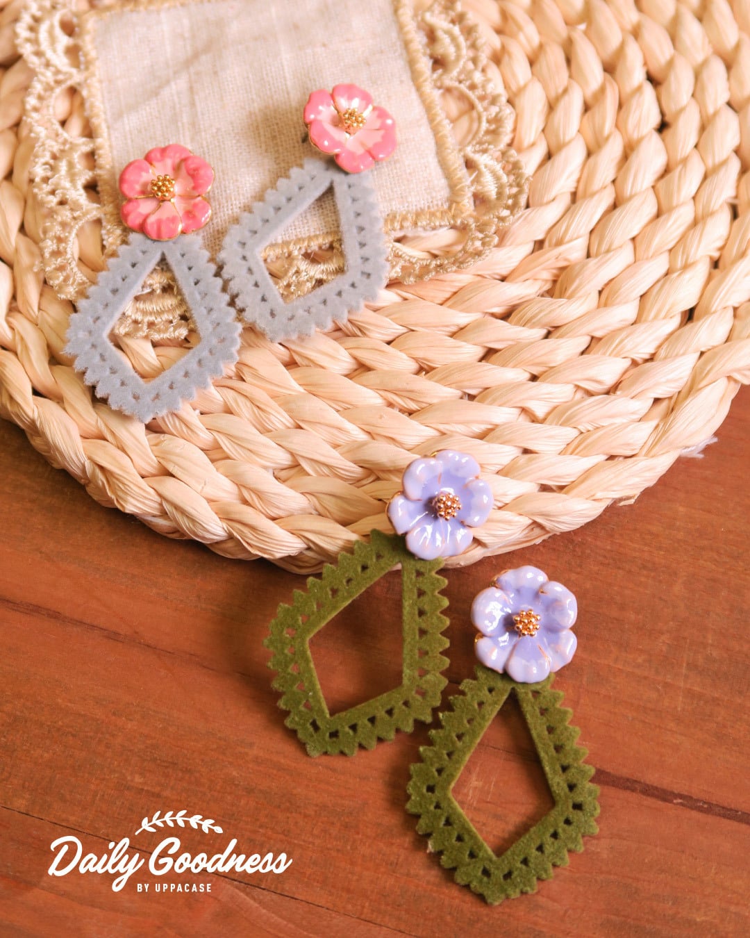 HU - 紫羅蘭絨面耳環 (紫色拼墨綠色款)