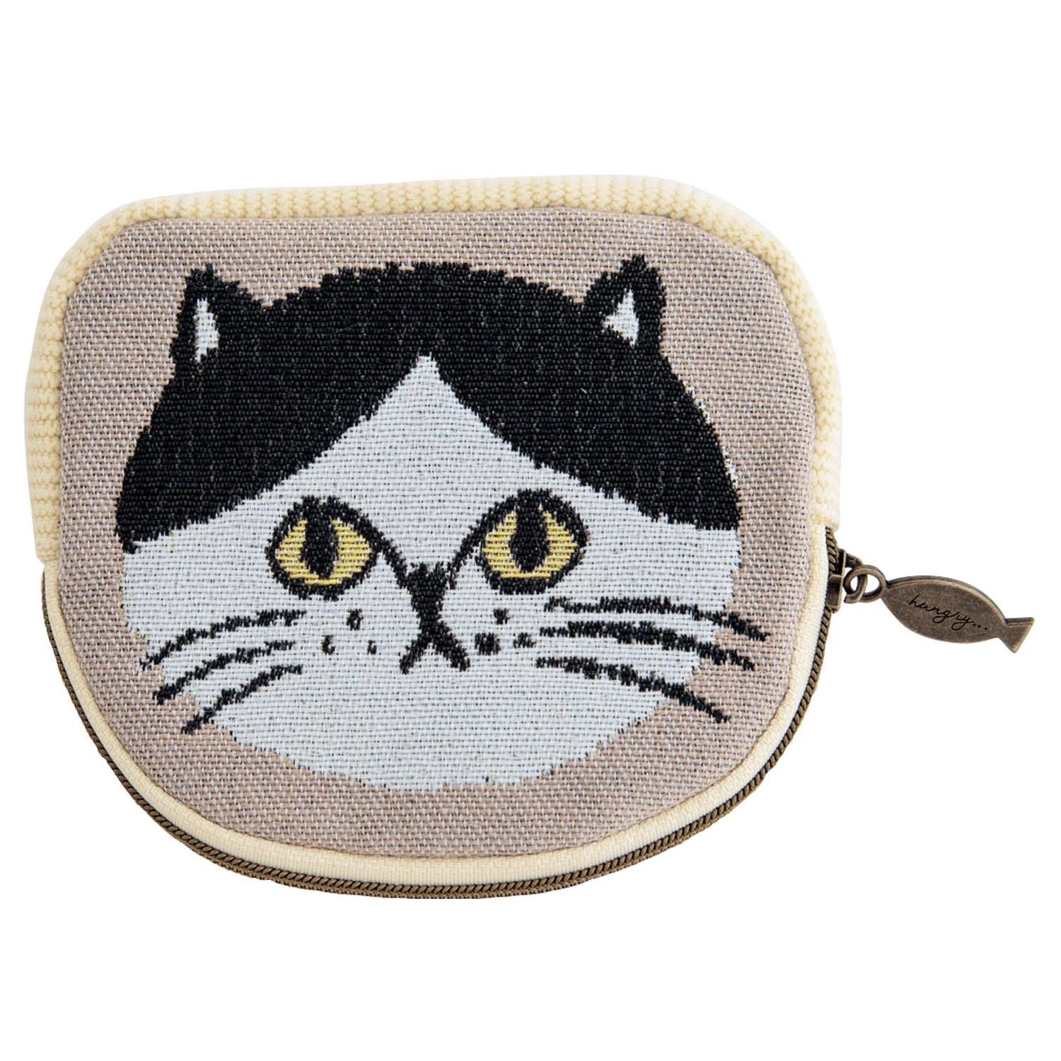 I LOVE CAT - 貓咪頭零錢包 (杏色黑白貓款)