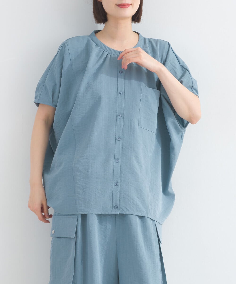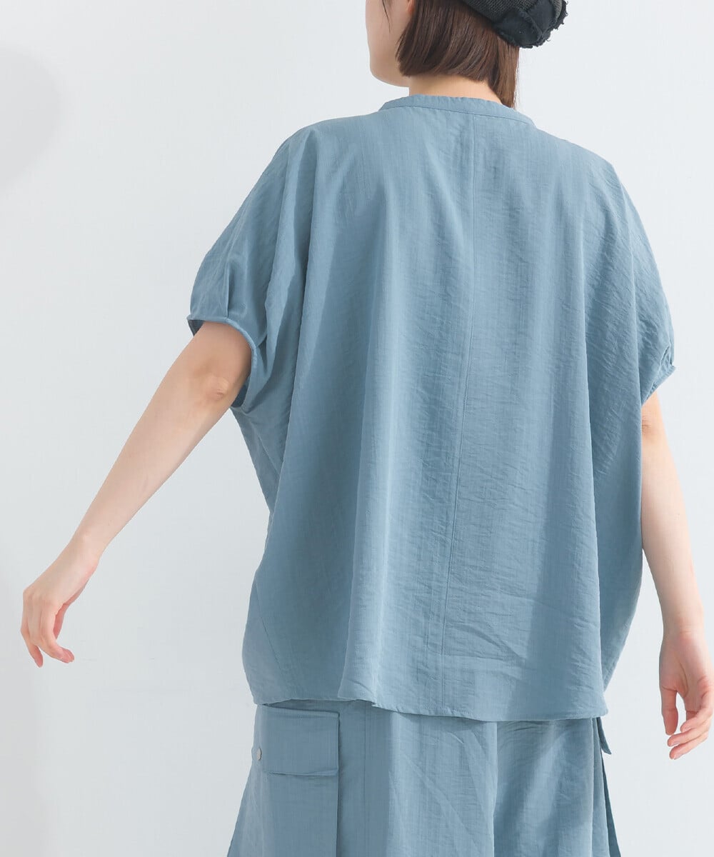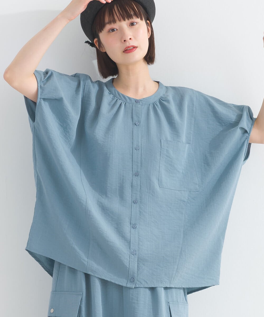 LP - 蝙蝠袖人造絲短袖襯衫 (藍色)