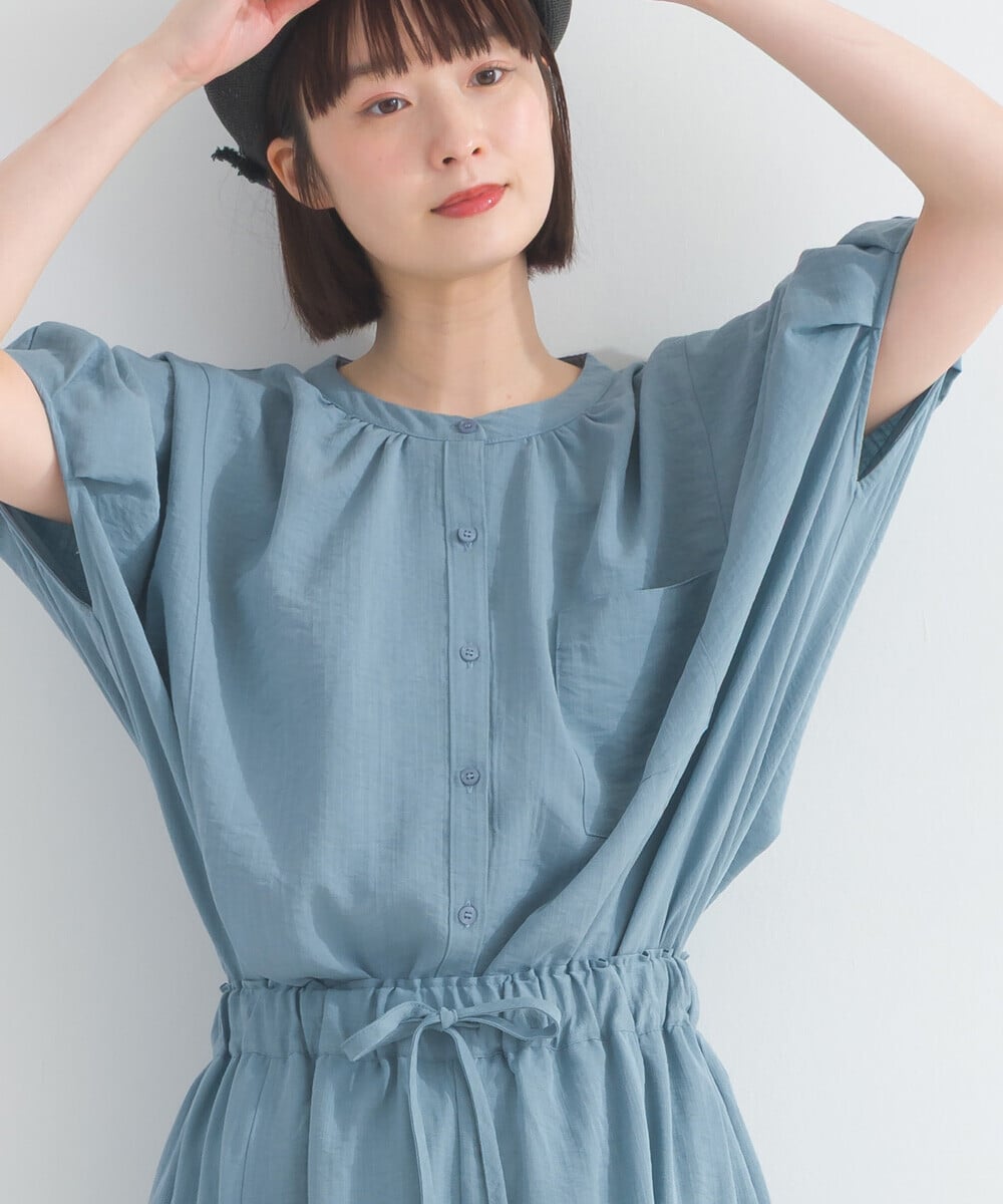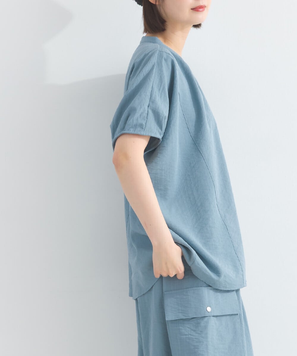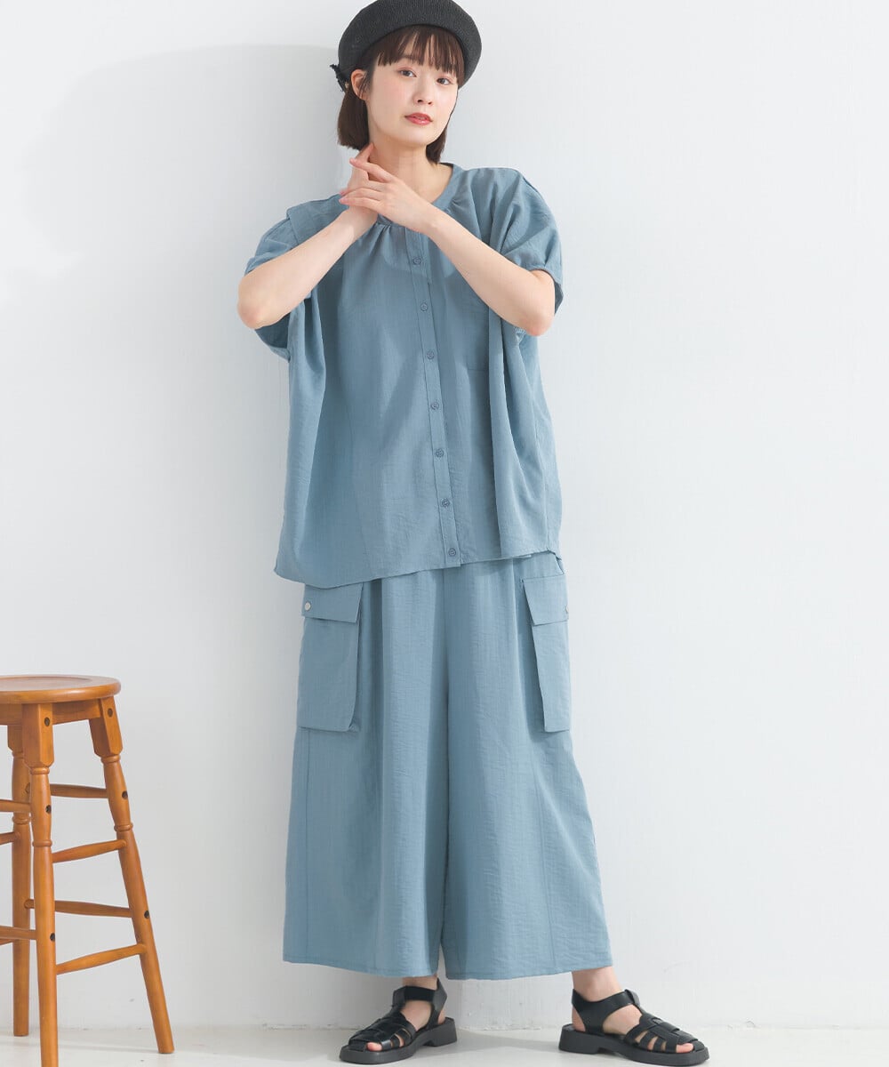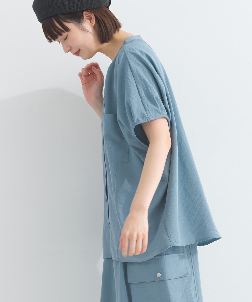 LP - 蝙蝠袖人造絲短袖襯衫 (藍色)