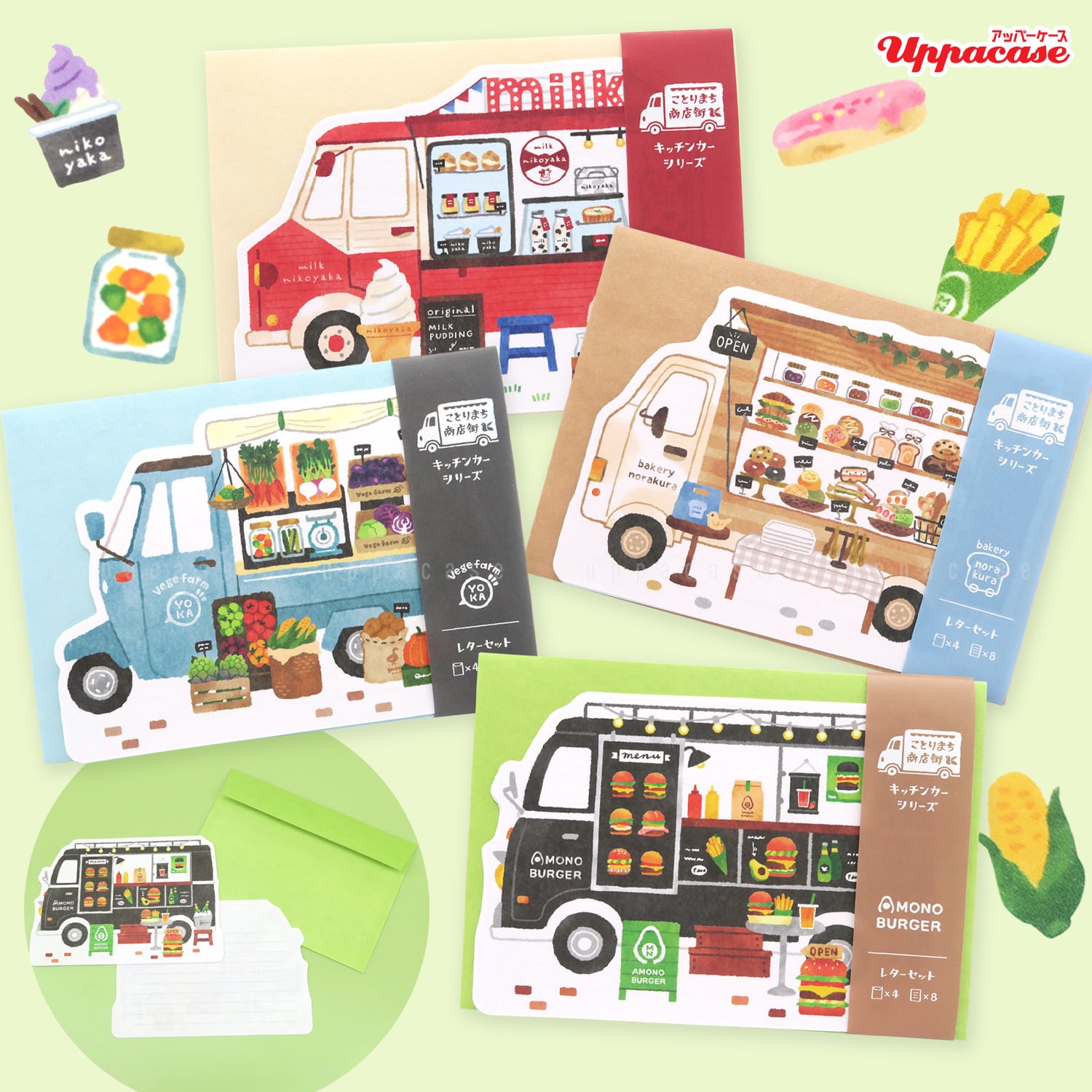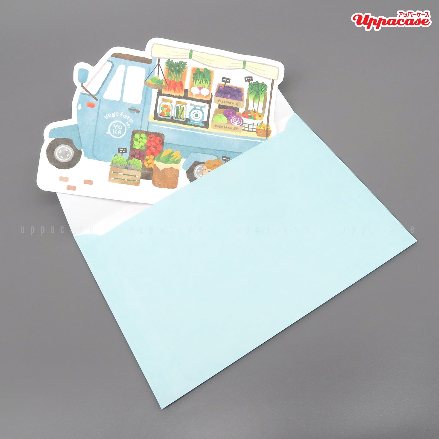 商店街系列再推出新的店鋪了!這次是不同的車輛店鋪,一定有一間吸引到你止步觀賞~色彩豐富的車身是信紙,背後有橫線方便書寫,大張的插圖更能令人好好欣賞當中的細節。使用和紙素材,手感特別也給人溫暖的印象。商品尺寸:約12×16.6cm內容:包含和紙信紙8枚及和紙信封4枚