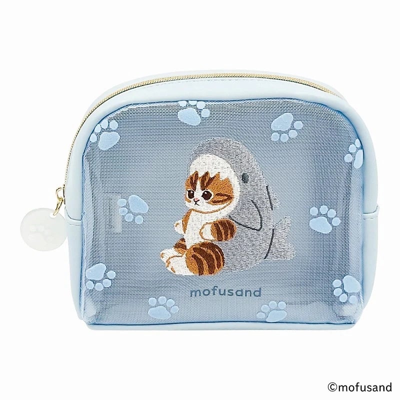 Mofusand - 紗網小物包 (藍色鯊魚貓款)