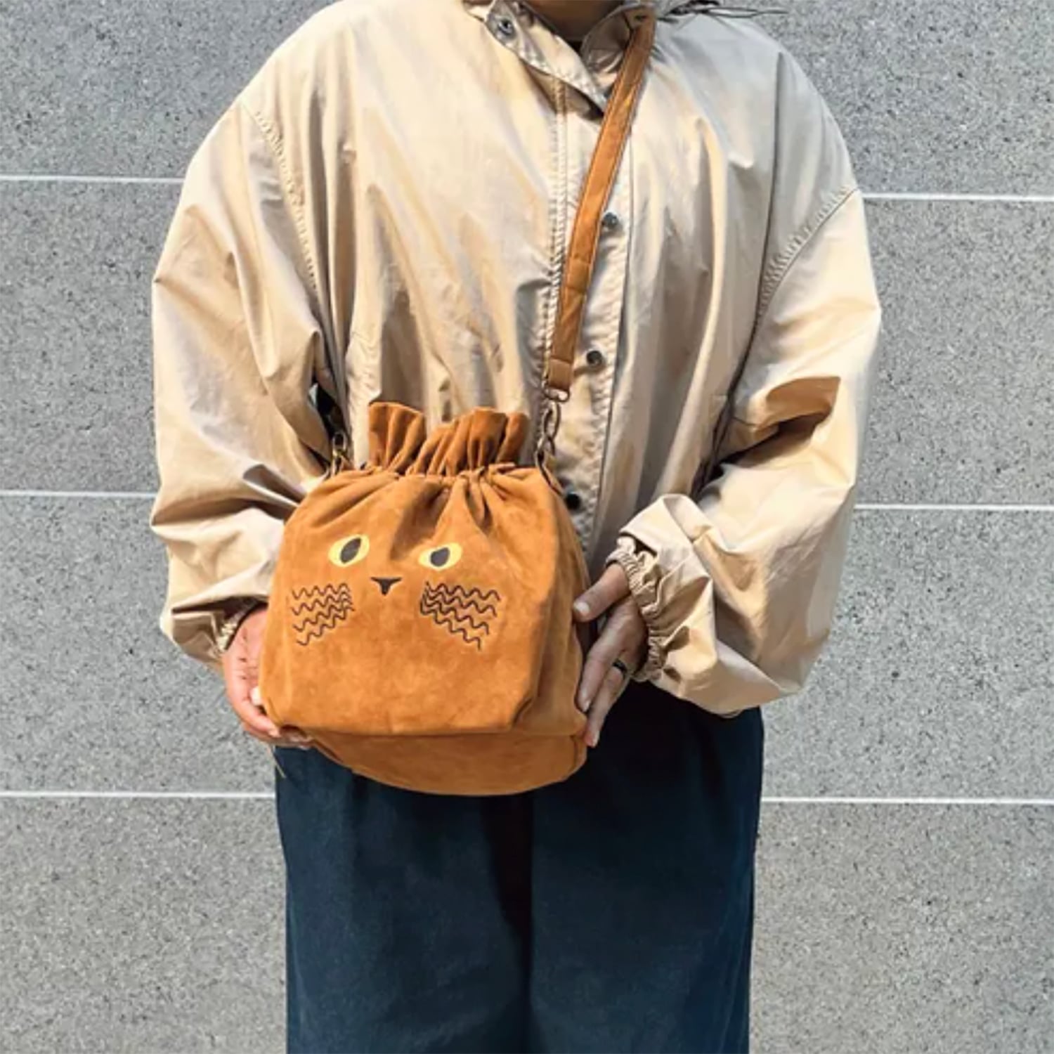 Momentum - 貓咪大頭束帶斜揹包 (駝色款)