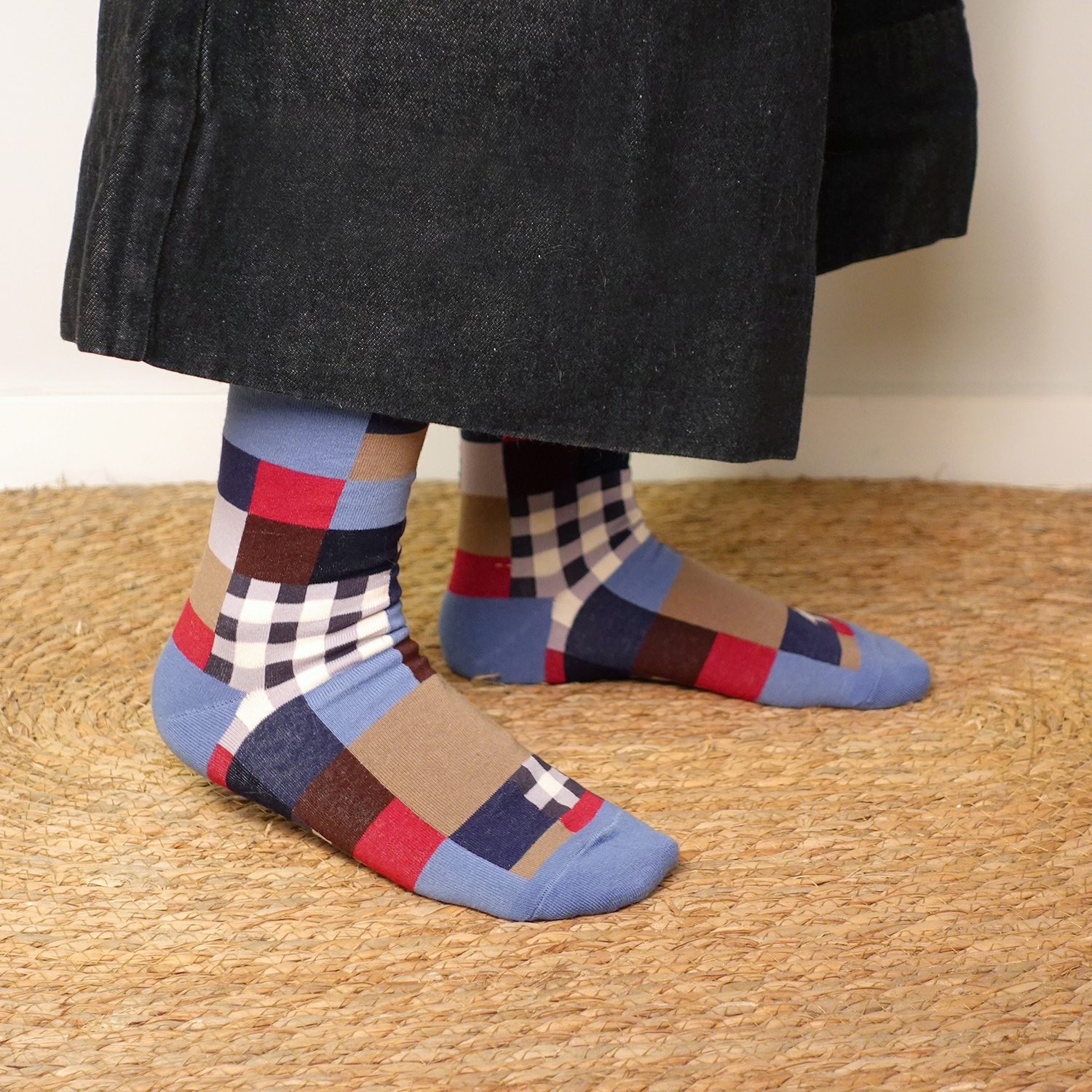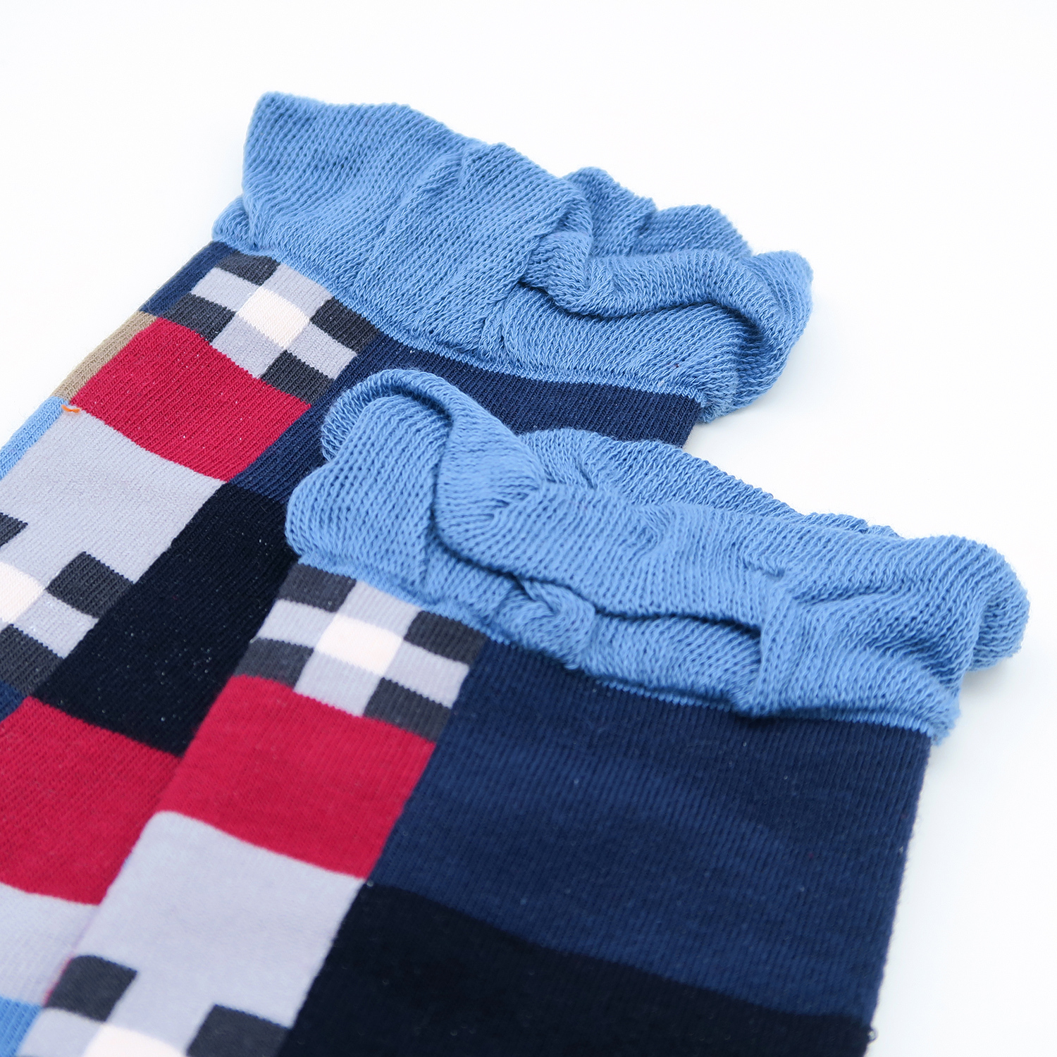 追求時尚的您,讓腳步穿越風格的海洋。這個設計概念將日本布料的拼接圖案注入襪子的設計中,每一步都彷彿踏入一個浪漫的藍色世界。藍色調的拼接圖案,為您帶來一份清新和時尚感。這款襪子以特殊的色塊拼接,展現出日本布料獨有的藝術魅力。女裝尺寸:23-25cm