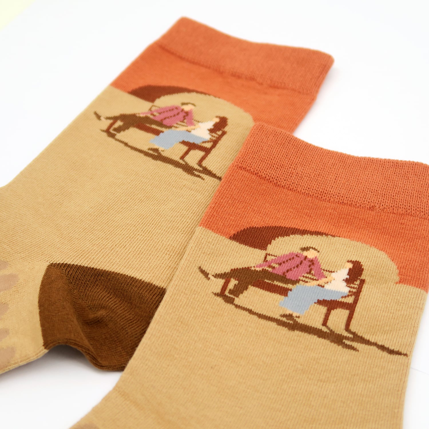 Hollywood Footnotes系列的設計靈感源自不同的電影場景,從經典到時尚,每款襪子都展現了獨特的品味和風格。這次我們帶來了一系列中性設計的襪子,尺寸適合男女通用,讓您無需擔心尺寸的煩惱。《Before Sunset》長椅上的閒談輕得像一片雲餘暉把他們的影子拉得好長分不清是夕陽的溫度還是誰悄悄溫熱了時光男女通用尺寸:22-27cm