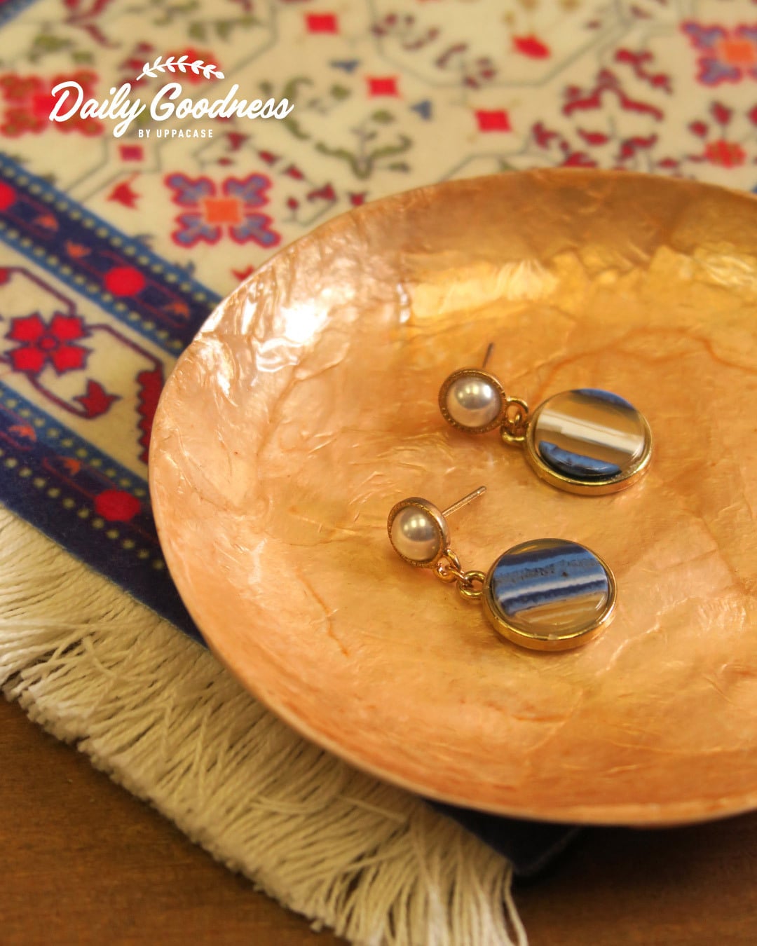 PJ - 珍珠海浪雲霧渲染耳環 (藍色雲霧款)