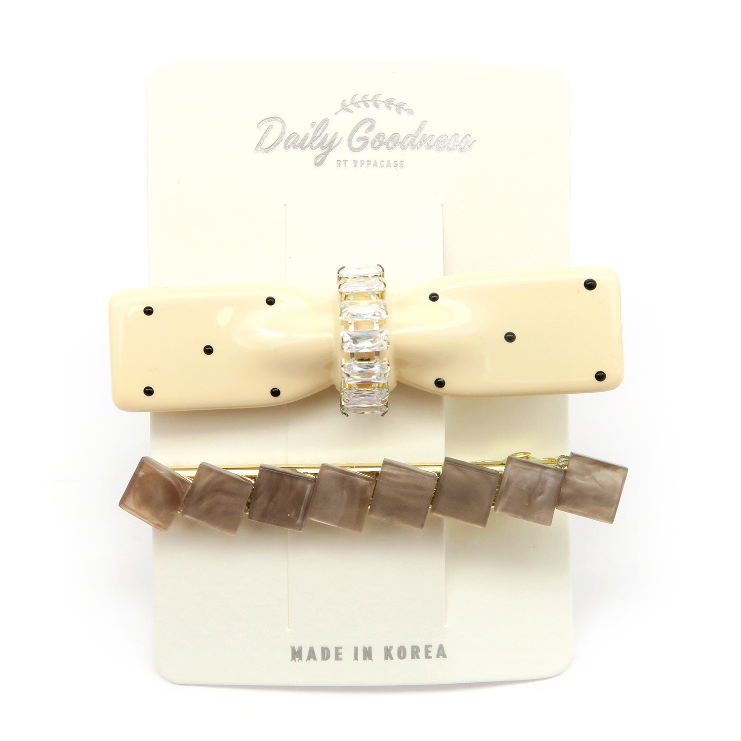 PJ - 蝴蝶菱角髮夾套裝 (米白色款)