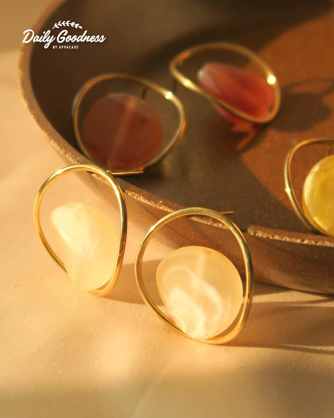像滿月一樣的圓框耳環,三種顏色各像不同天色下的月光。