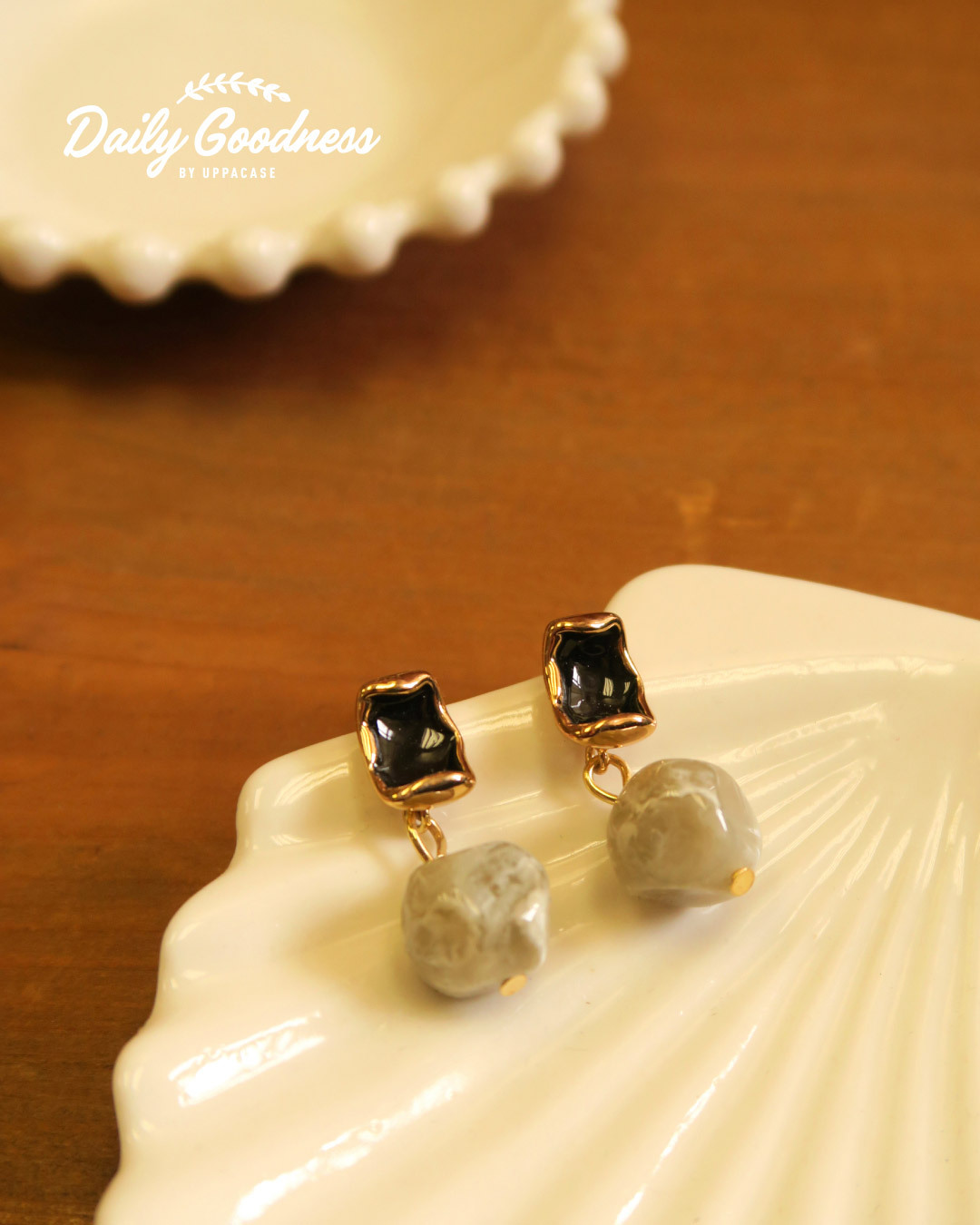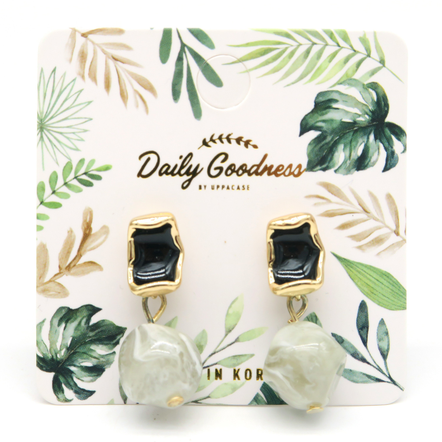 ZH - 復古金框圓球耳環 (灰黑色款)