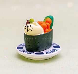 concombre的壽司店系列,由店主所握的壽司雖然不會迴轉,但美味的程度使人眼睛也迴轉!令人不禁會想倒上醬油的小碟子,很適合擺放一貫貓咪壽司或文鳥細卷壽司。小小一個放在桌面上不會造成阻礙,又能帶來不同的節日氣氛~可以同系列整套擺放,與其他小物放一起裝飾又可以,隨你喜歡能有不同的組合方式。商品尺寸:約4.3×0.8cm產地:越南※手工上色製品可能存在輕微差異,不屬於瑕疵範圍,敬請諒解。