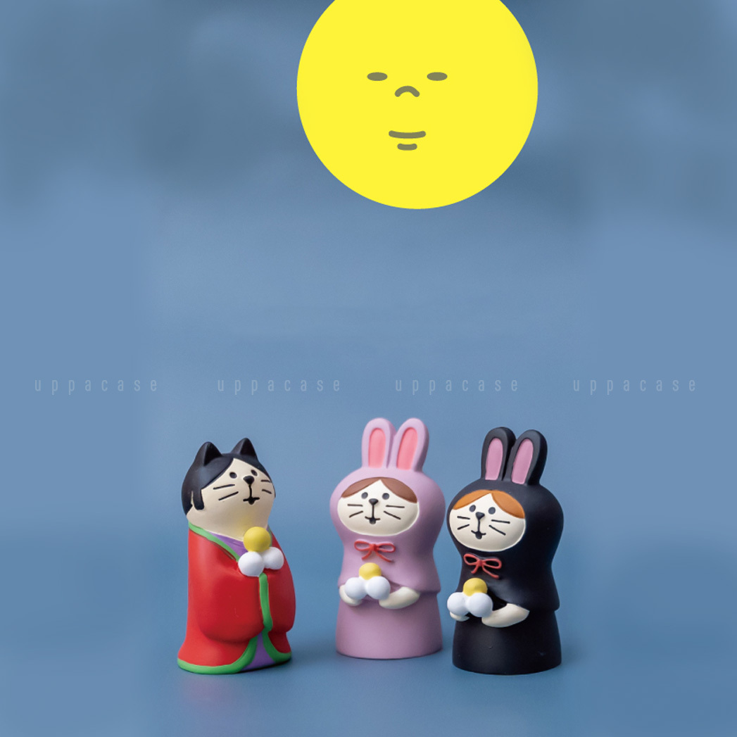 帶上月見糰子扮成兔子的模樣來參加賞月會的貓咪們,可見他們十分期待~這個中秋就與concombre的可愛角色們一起到湖邊賞月吧~從月見船上或橋上欣賞月亮都各有各特色,大家都沉浸在月亮的美妙之中。月亮與兔子元素十分貼合中秋節的裝飾擺設,充分地享受一個特別的日式中秋節吧!商品尺寸:約2.6×2.8×5.2cm產地:越南※手工上色製品可能存在輕微差異,不屬於瑕疵範圍,敬請諒解。