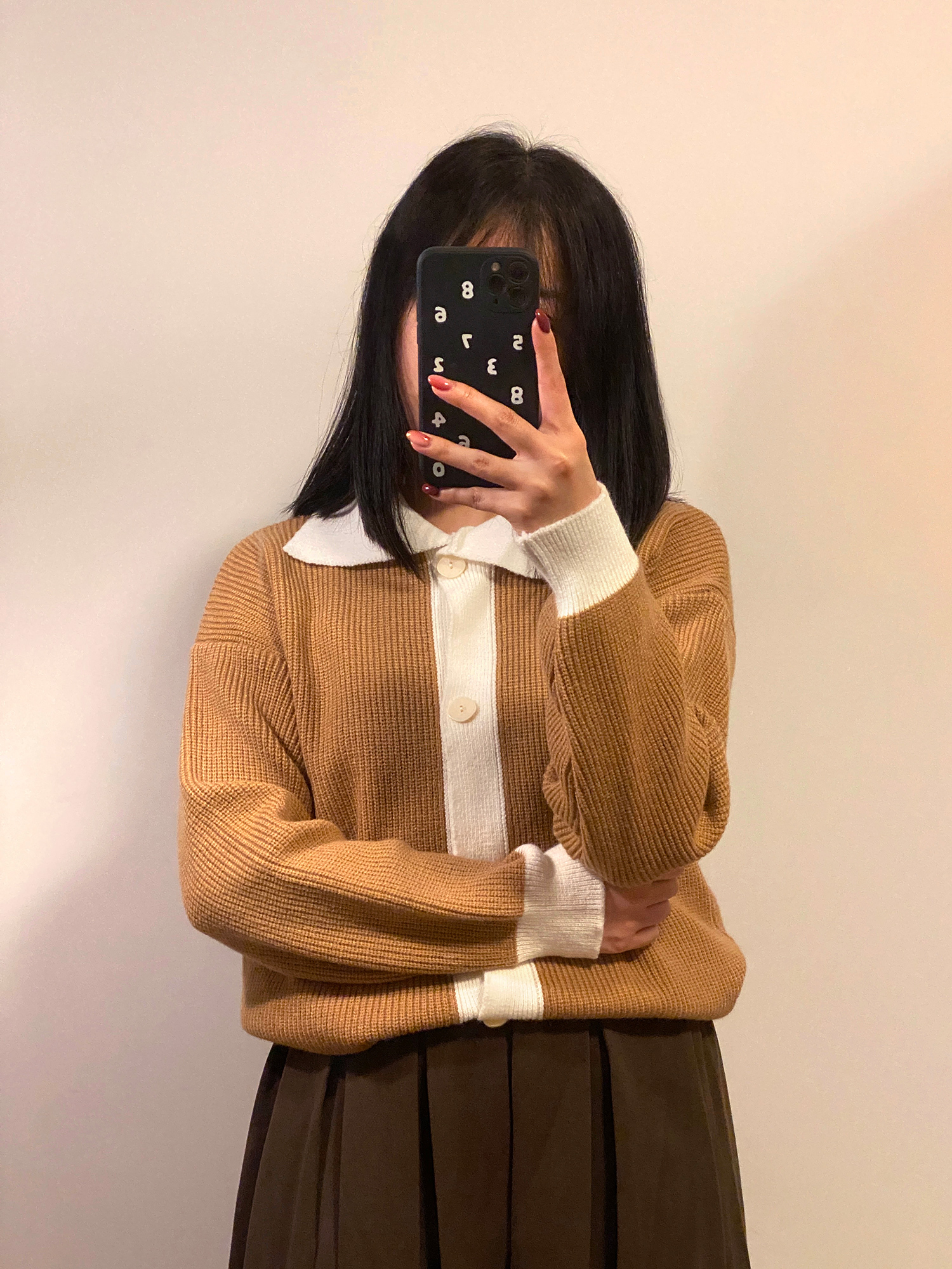 TIM - 寬鬆拼色針織長袖毛衣 (駝色款)