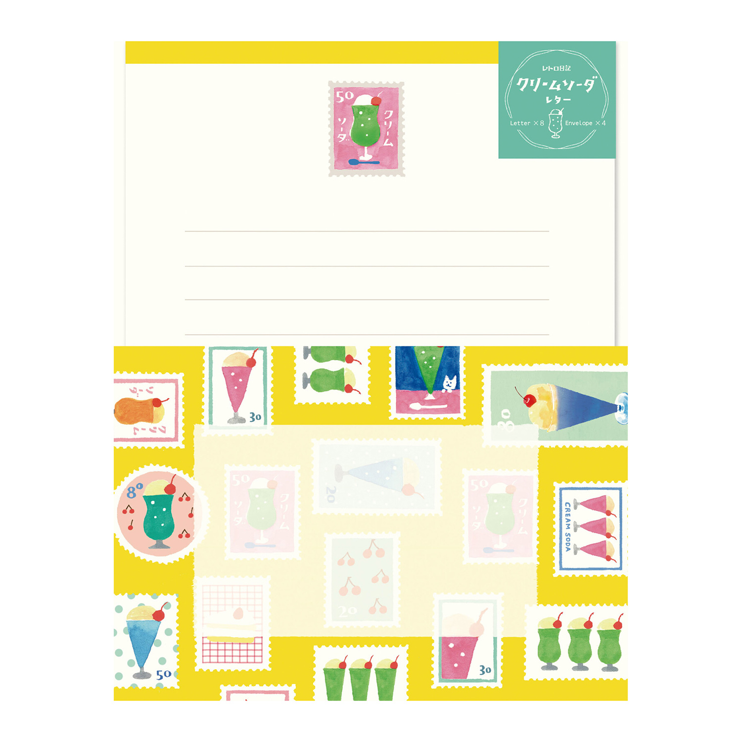 古川紙工 - 信紙套裝 (黃色復古飲品郵票款)