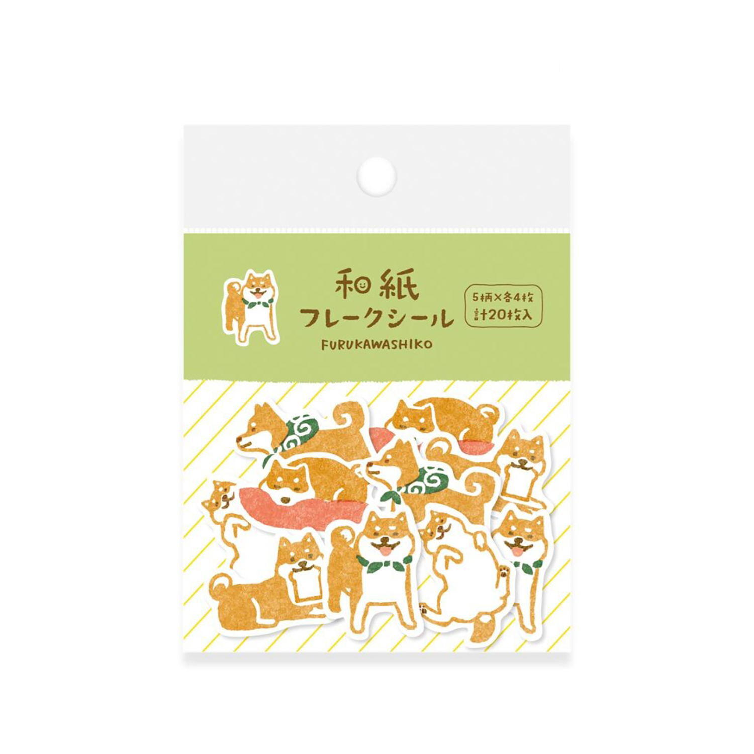 古川紙工 - 和紙貼紙包 (綠色柴犬款)
