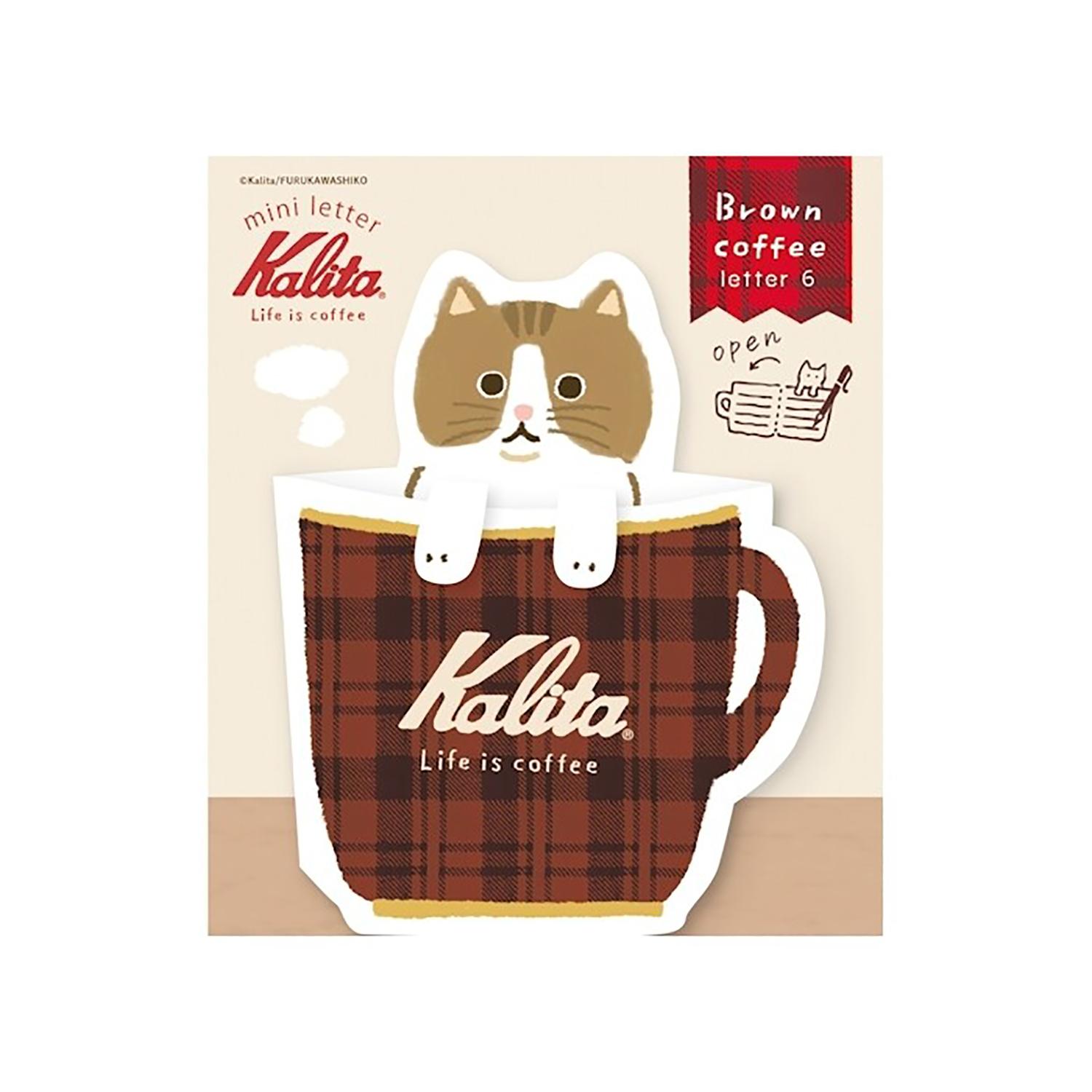 古川紙工 - 咖啡迷你信紙 (啡色格紋杯子貓咪款)