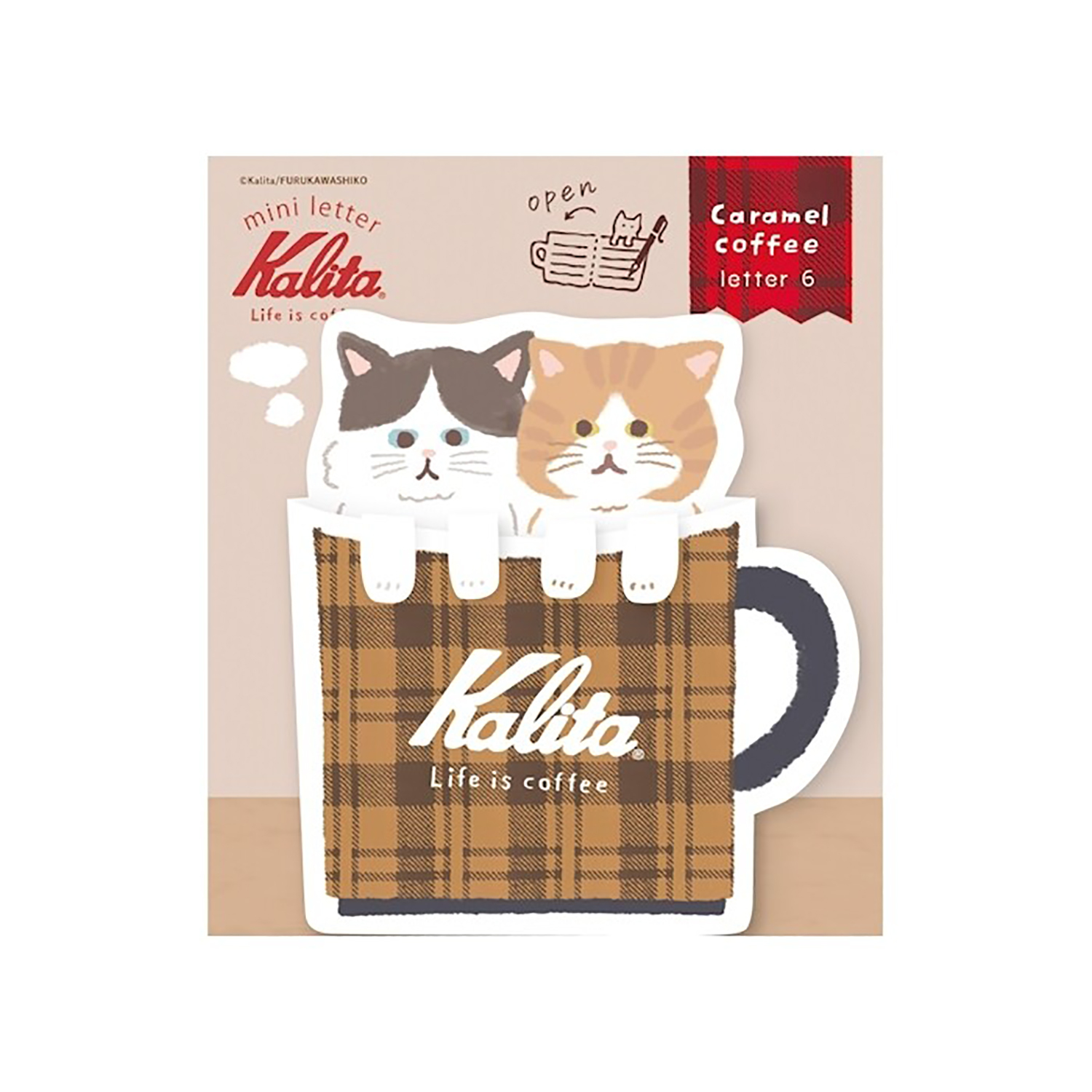 古川紙工 - 咖啡迷你信紙 (淺啡色格紋杯子雙貓款)