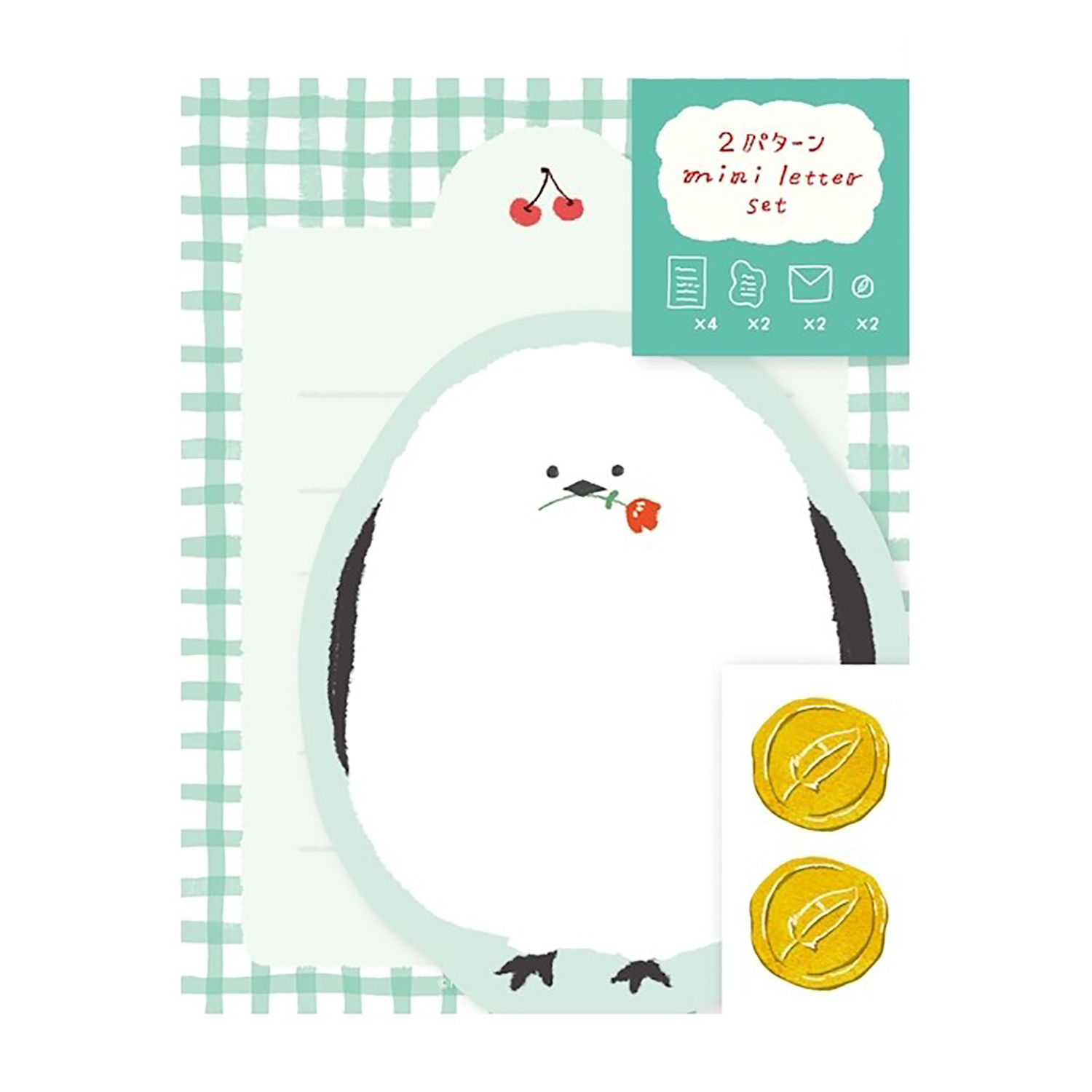 古川紙工 - 模切迷你信紙套裝 (綠色長尾山雀櫻桃款)