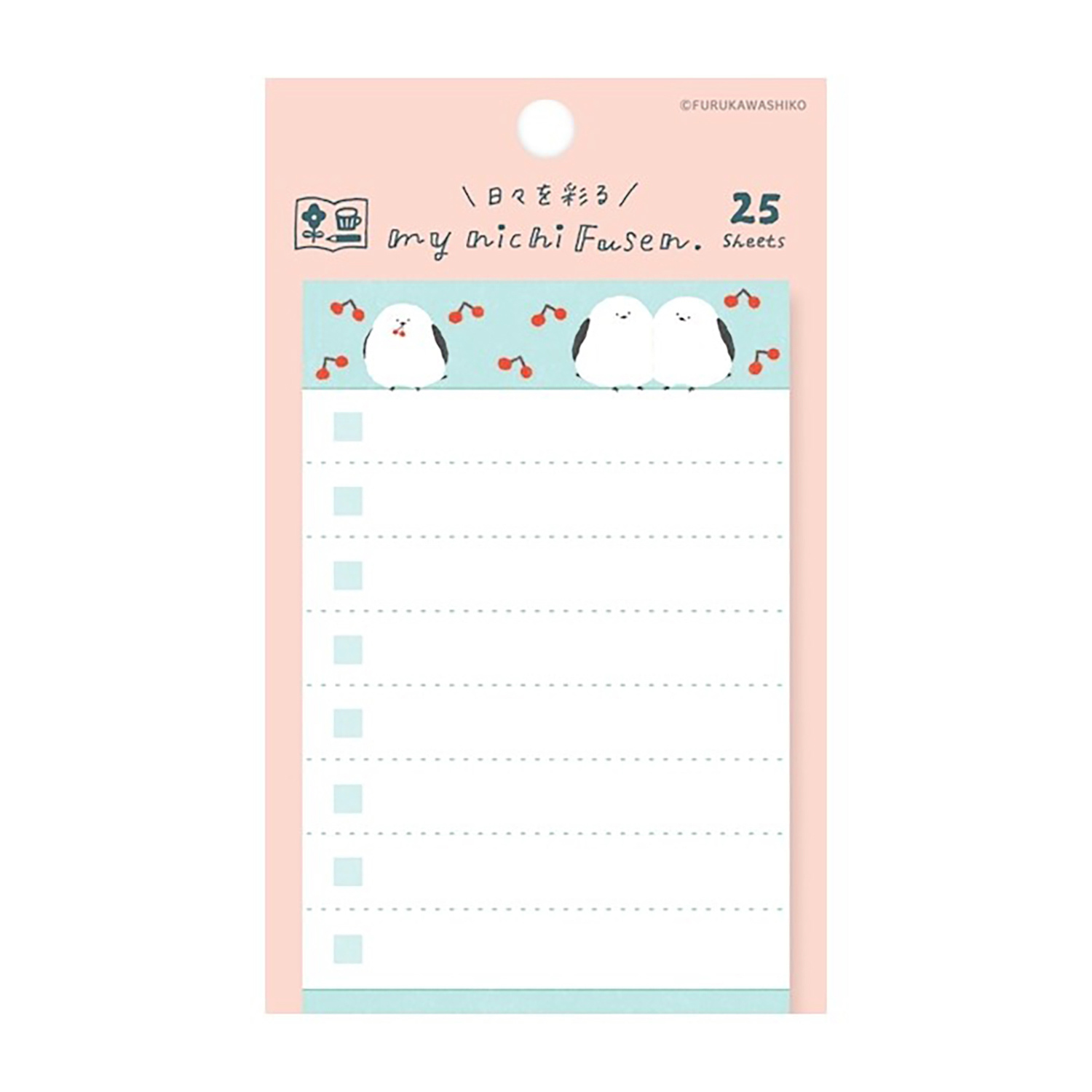 古川紙工 - 長形記事貼 (粉紅色長尾山雀櫻桃款)