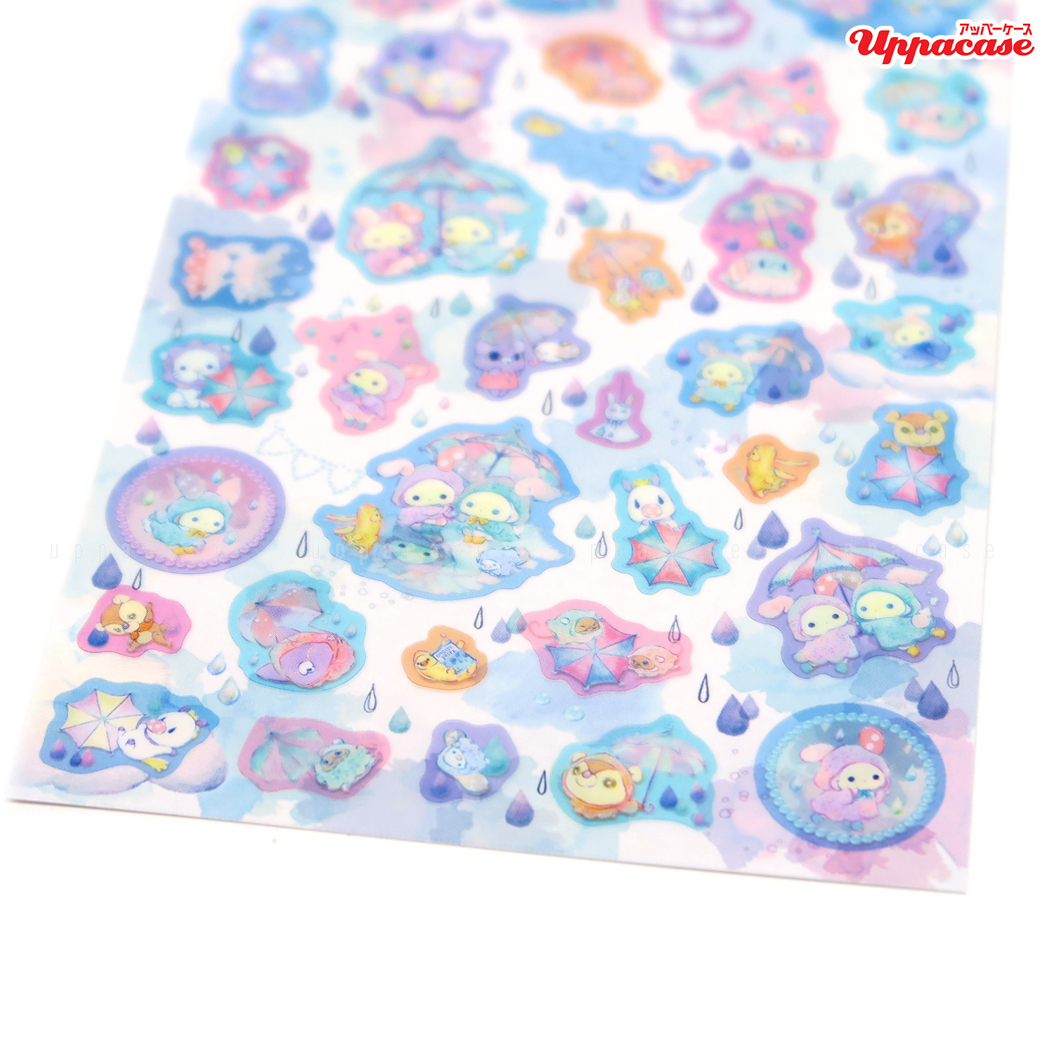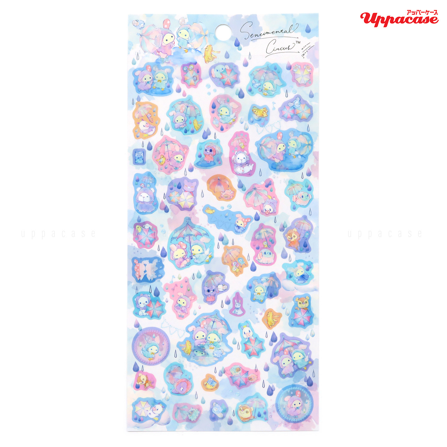 充滿幻想的透明感與浮遊感的新主題,以細膩的水筆觸勾畫出憂傷又精緻的世界觀。在Shappo身邊下起了雨來,各種不同的回憶與淚水與雨點混合成為小水窪。飾演雲的Spica在雨停之後便隨之一併消失,與馬戲團的成員們一起感受這治癒的系列吧!雖然每張貼紙都有底色,但略略能透到底下的圖案,帶來清新的透明感。商品尺寸:約20×9.5cm