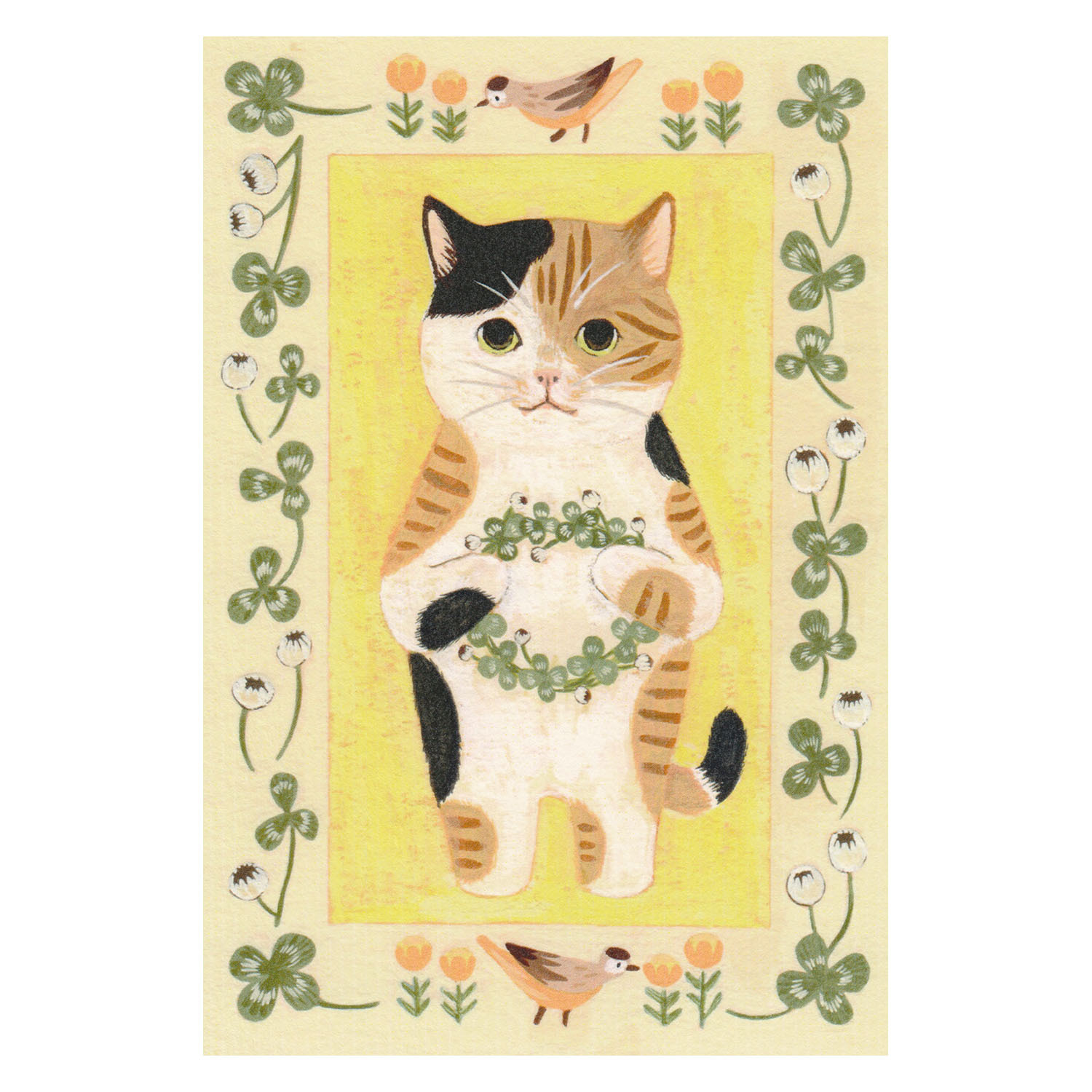 4legs - 明信片 (淡黃色三花貓四葉草款)