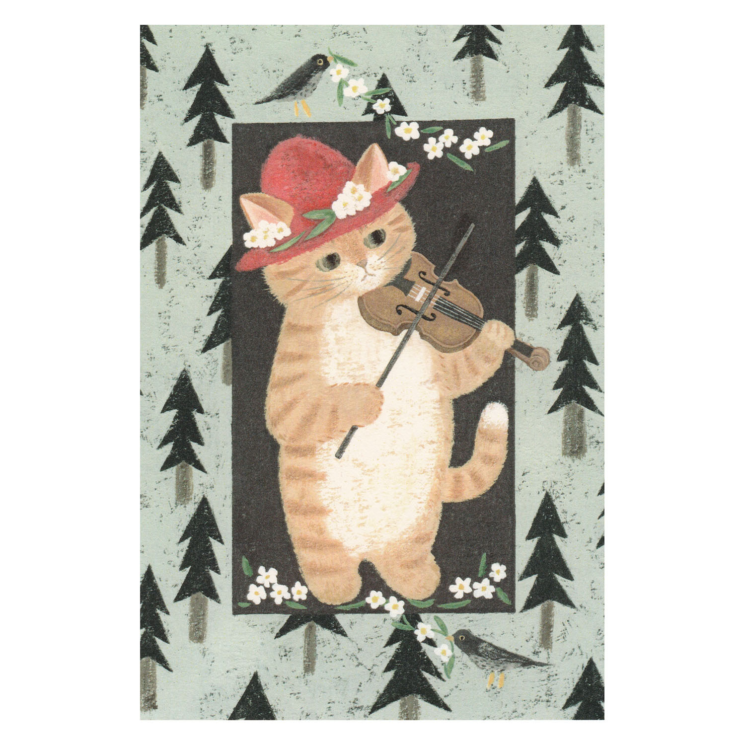 4legs - 明信片 (淺藍色帽子貓小提琴款)