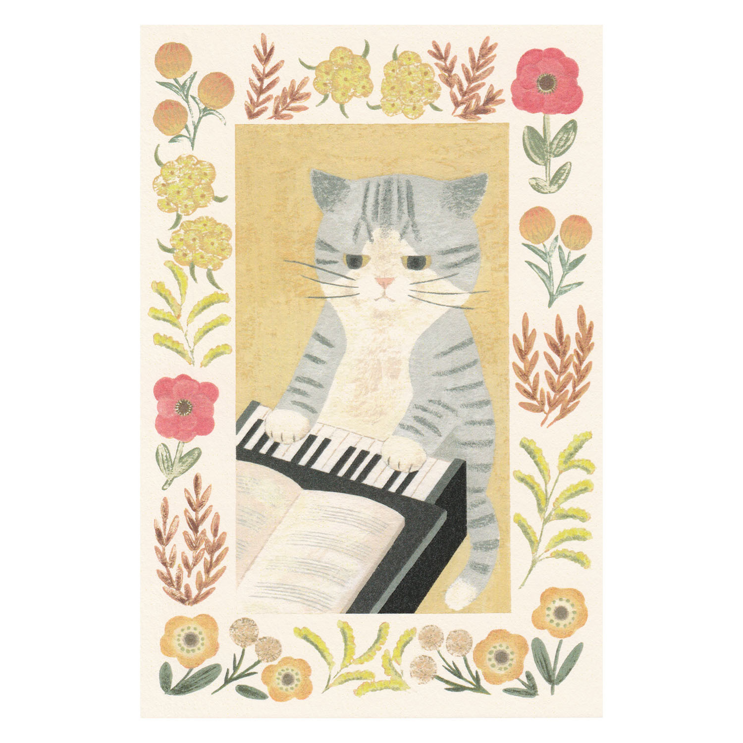 4legs - 明信片 (白色虎紋貓鋼琴款)