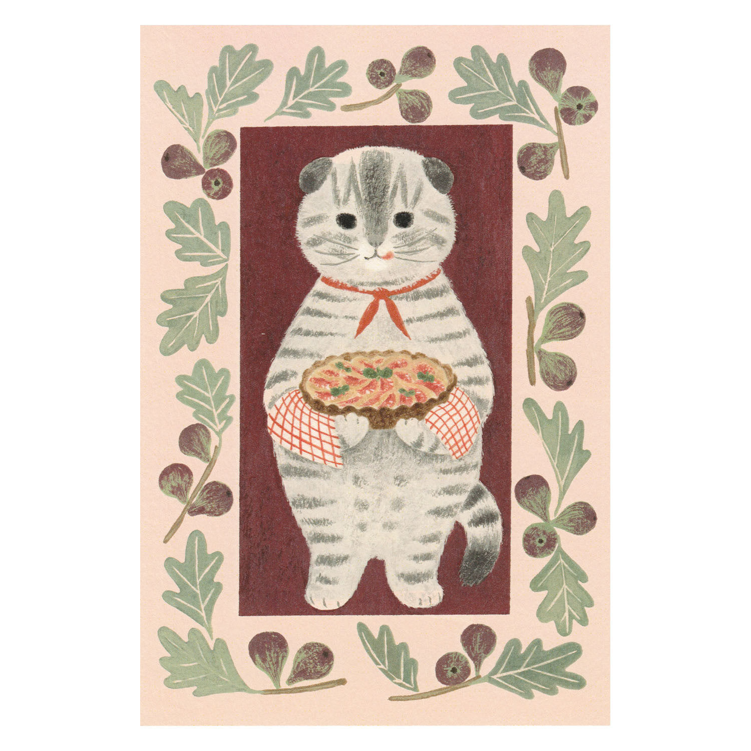 4legs - 明信片 (粉紅色虎紋貓蘋果派款)