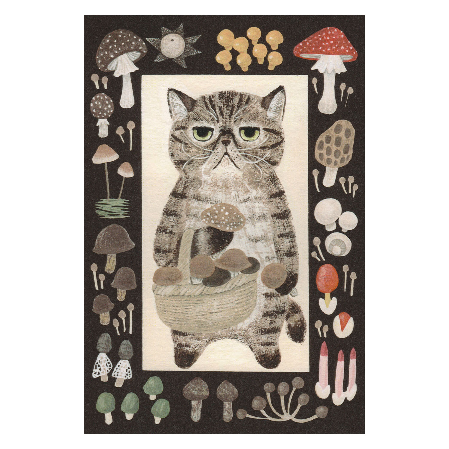 4legs - 明信片 (黑色異國短毛貓蘑菇款)