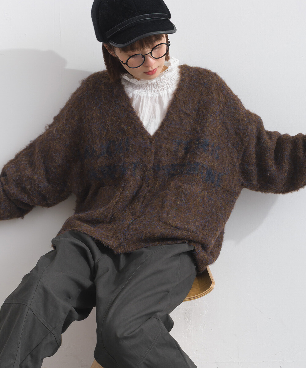 LP - 毛毛文字開襟毛衣 (咖啡色)