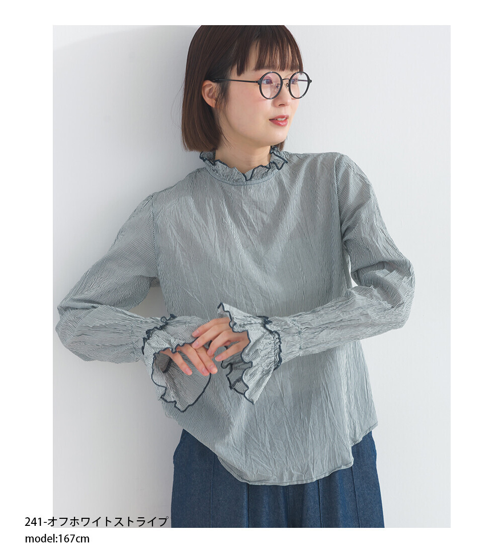 LP - 褶皺荷葉邊襯衫 (黑白間紋)