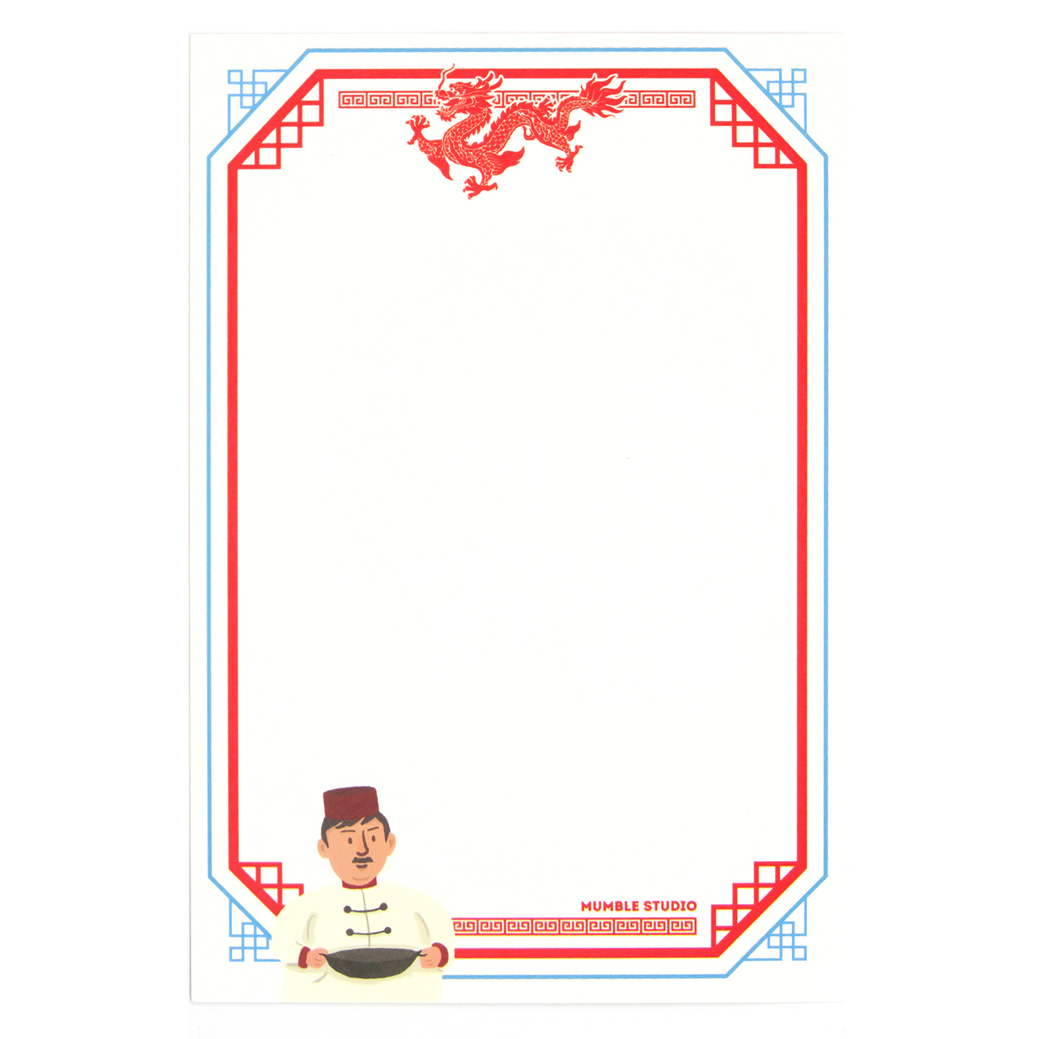 這款明信片適合對中國美食感興趣的人,也是作為禮物或紀念品的絕佳選擇,讓你感受中華餃子的風味和文化。