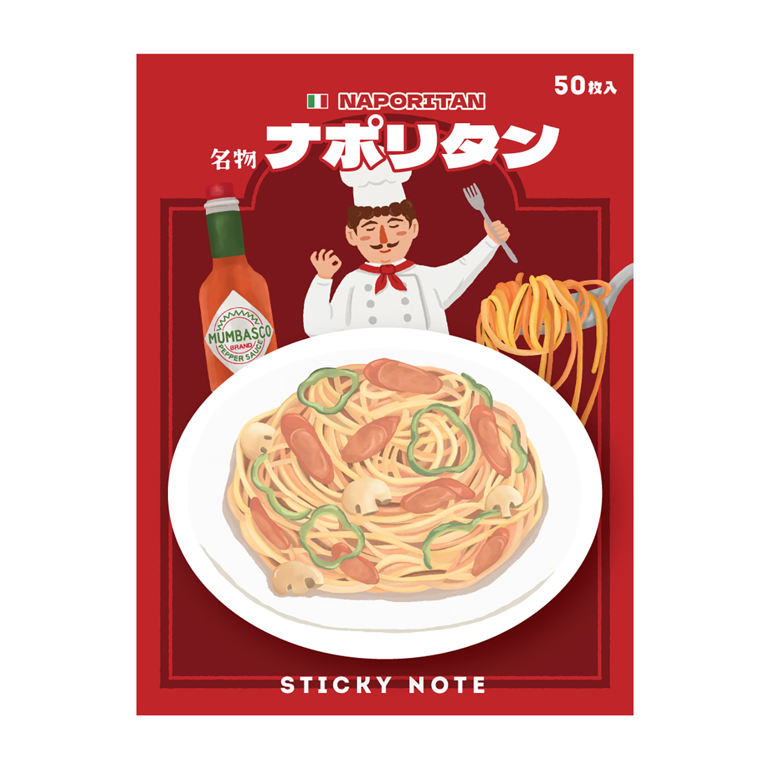 「世界料理」是Mumble的原創插畫系列,啟發自日本昭和時代海報和食物包裝設計風格。「拿坡里意粉」主題記事貼呈現了經典義式美食的魅力,封面上展現了誘人的拿坡里意粉、新鮮的蘑菇和蕃茄,以及充滿地中海風情的插畫元素。記事貼採用優質書寫紙印刷,每一頁都觸感舒適,書寫順暢。無論是用來記錄日常靈感還是美食食譜,這本記事貼都能為您的書寫時光增添一抹義大利的浪漫氛圍。讓Mumble陪伴您展開一段充滿美味與創意的筆記之旅,感受拿坡里意粉的經典魅力!商品尺寸:約6×8cm