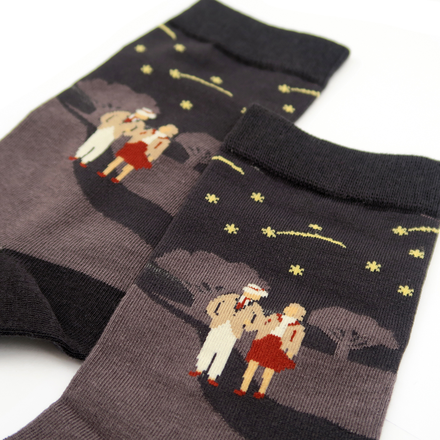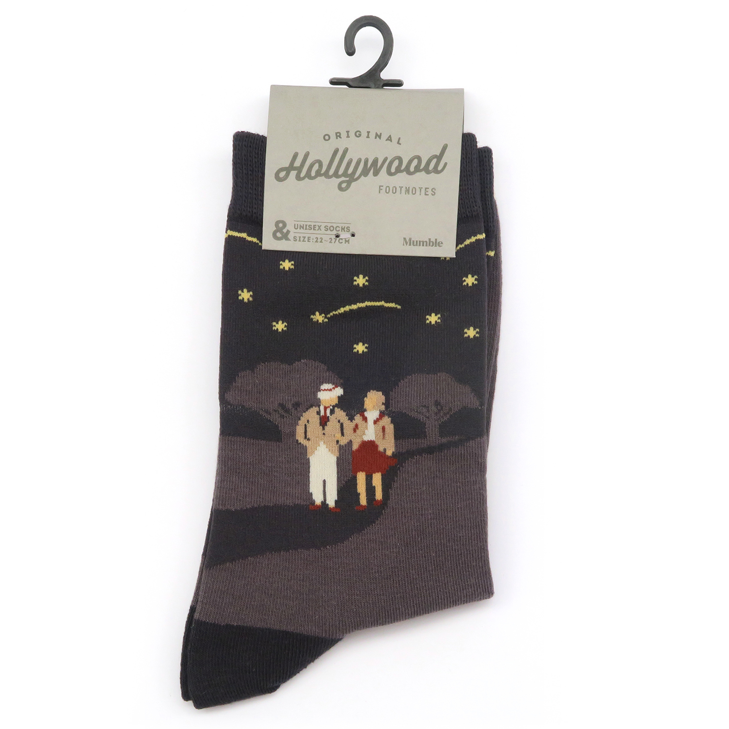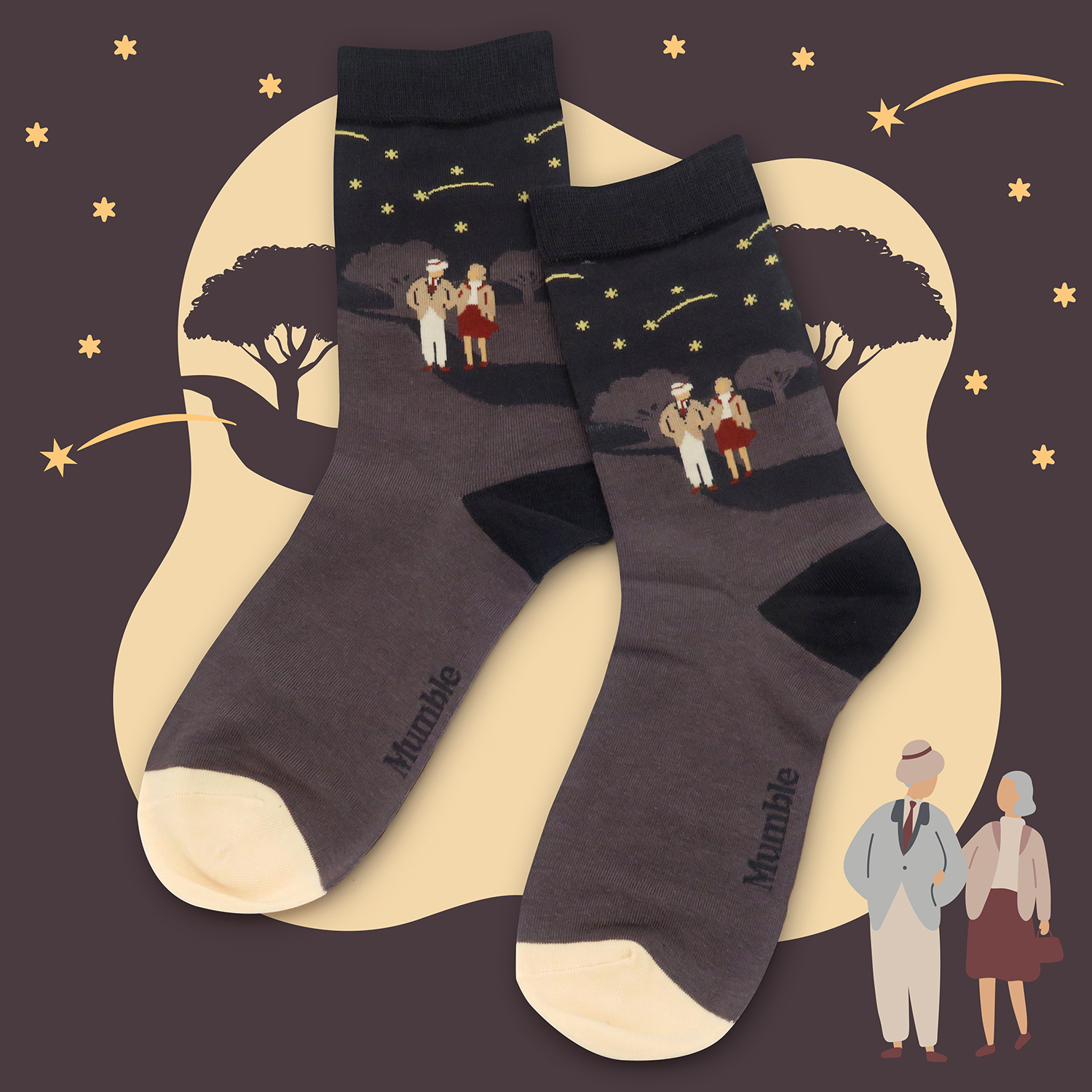 Hollywood Footnotes系列的設計靈感源自不同的電影場景,從經典到時尚,每款襪子都展現了獨特的品味和風格。這次我們帶來了一系列中性設計的襪子,尺寸適合男女通用,讓您無需擔心尺寸的煩惱。《Starry Night》在無垠的灰黑夜空中一對老夫婦在星空下攜手漫步他們的愛情永恆閃耀如星男女通用尺寸:22-27cm